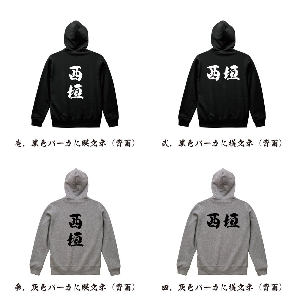 西垣 オリジナル パーカ 書道家が書く プリント フルジップ パーカー S M L XL XXL 110 130 150 【 名字 】