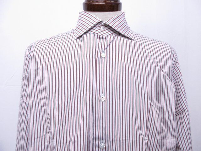 超美品【SOVEREIGN ソブリン】 ワイドカラー マルチストライプ柄シャツ (メンズ) size41 ホワイト×ワインレッド系 111-265-7849◯33MK4636