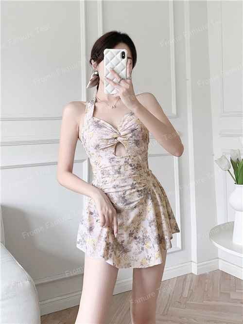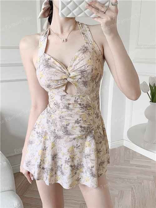 スカート水着 水着ワンピース レディース 体型カバー キレイめ 夏 おしゃれ L ベージュ
