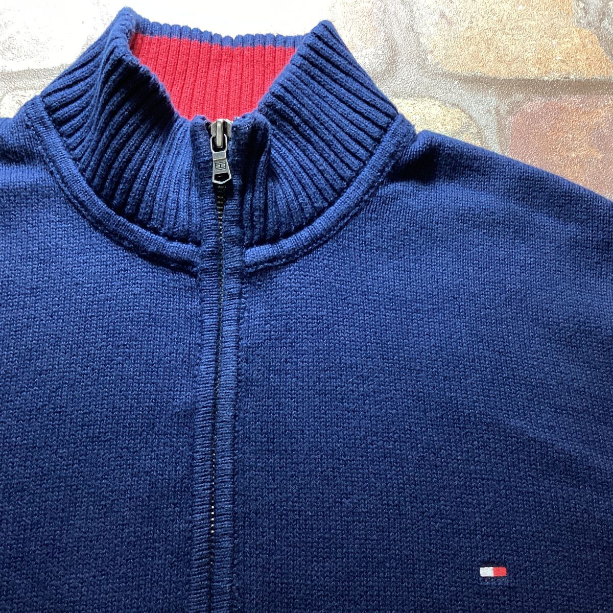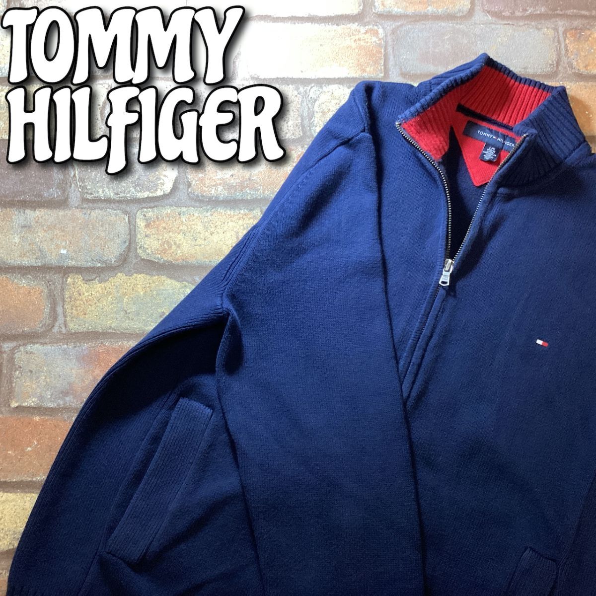 ★USA直輸入★良品&正規品★【TOMMY HILFIGER トミーヒルフィガー】ジップアップ ニットジャケット カーディガン【メンズ L】紺 K3-407