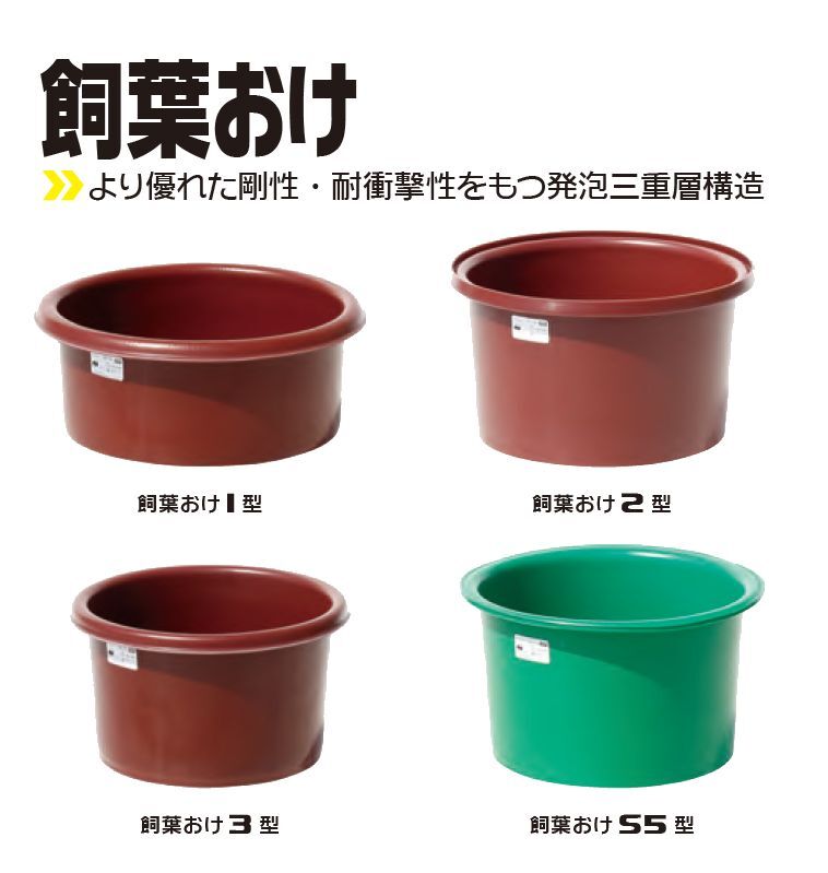 飼葉おけ1型 | 50 | 540 | 530 | 255 | 7.0 | 4.3 | ブラウン | 発泡三重層 |