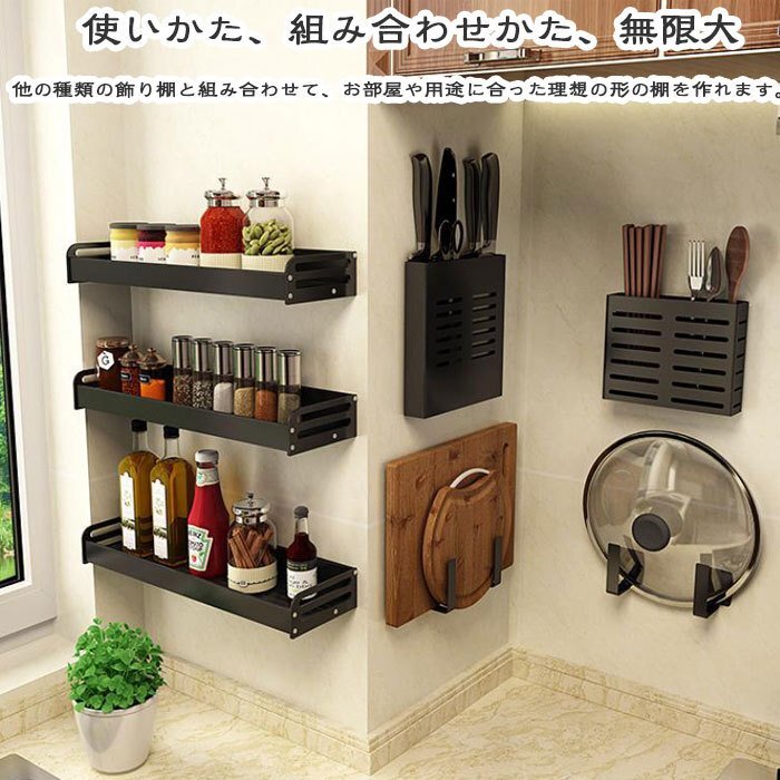 調味料や洗剤など生活雑貨を収納したり、本や小物、一輪挿し、観葉植物などを置いたり、飾りと実用的な収納を兼ね備えています。 壁掛けだけでなく、置きでの使用もいいです。お部屋のデッドスペースになりがちなところを有効活用できます。お部屋が狭くても収納空間を拡大できます。