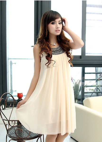 鋲飾りがフェミニンなワンピースです。お洒落度バツグンで女性らしさを演出した一品です。裏地付。