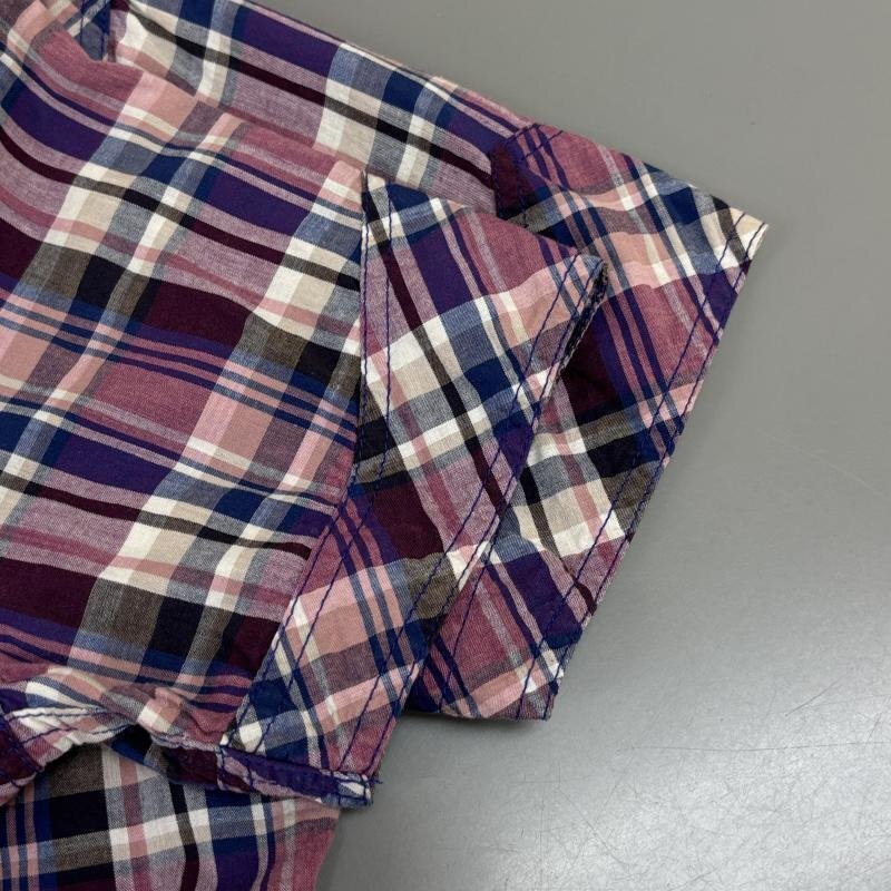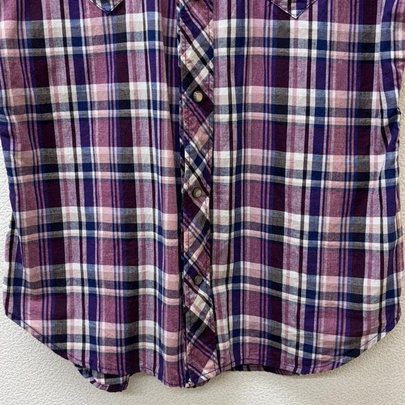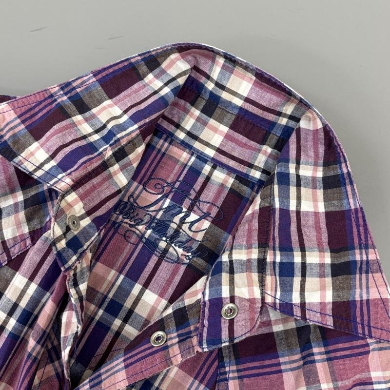 ティーエムティー タータンチェック柄 半袖 ウエスタン シャツ 紫系 パープル S