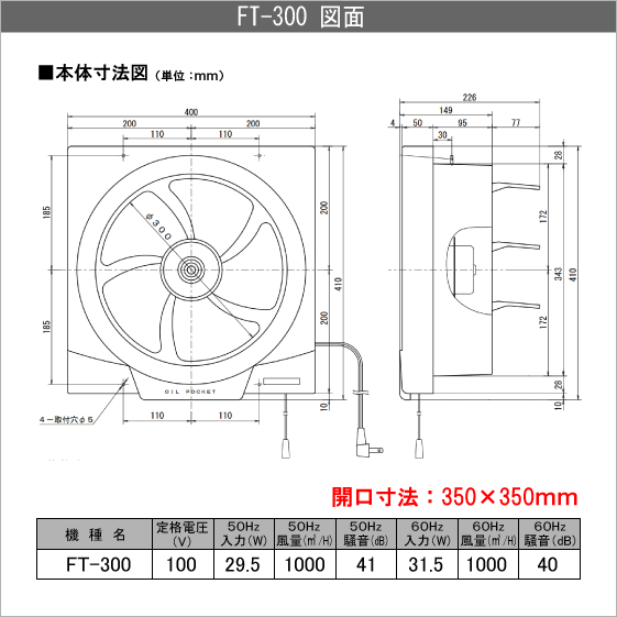 ■ 開口寸法:350 x 350mm