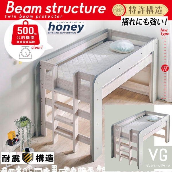 | タイトル | ロフトベッド ハニー honey 高132cm BASIC 耐荷重500㎏ ベゼル耐震構造 特許取得 業務用 会社仮眠用 送料無料 WH-VG ヴィンテージグリーン |