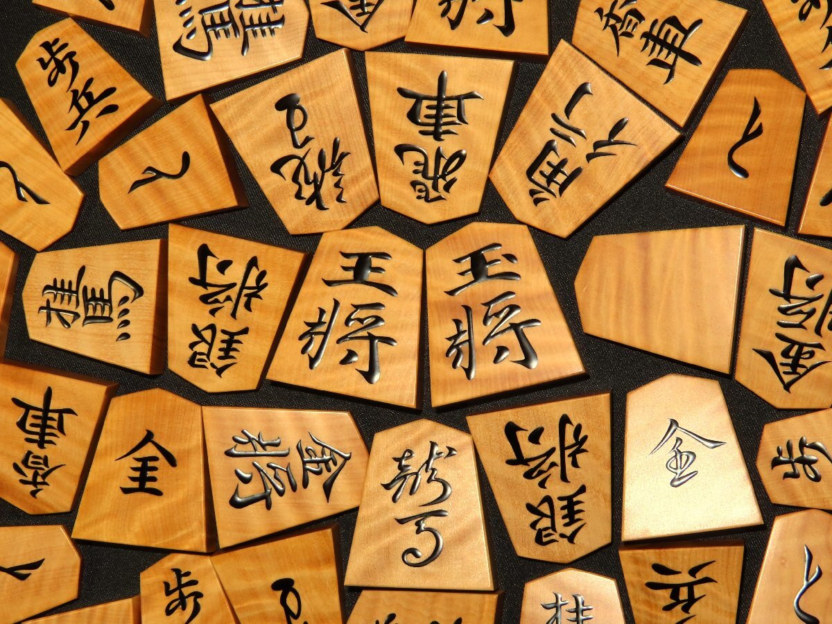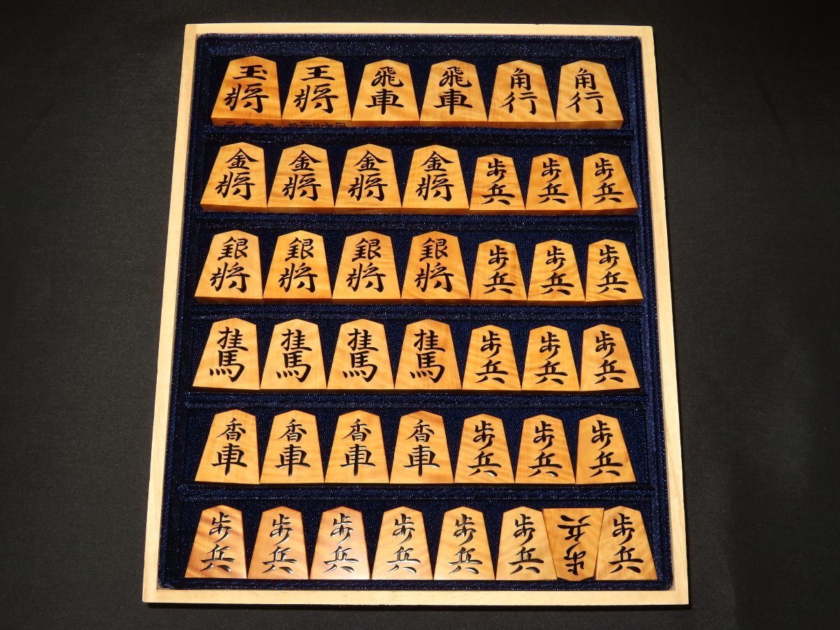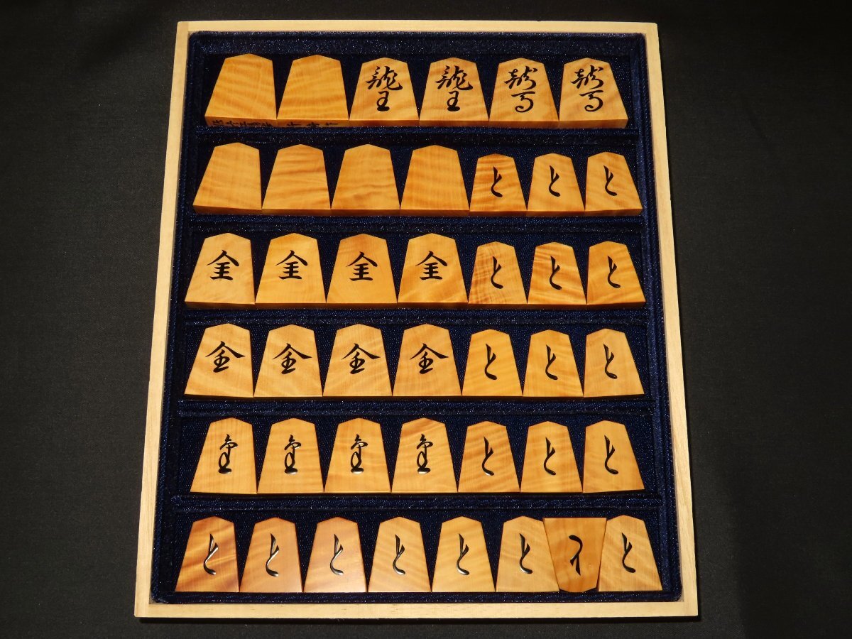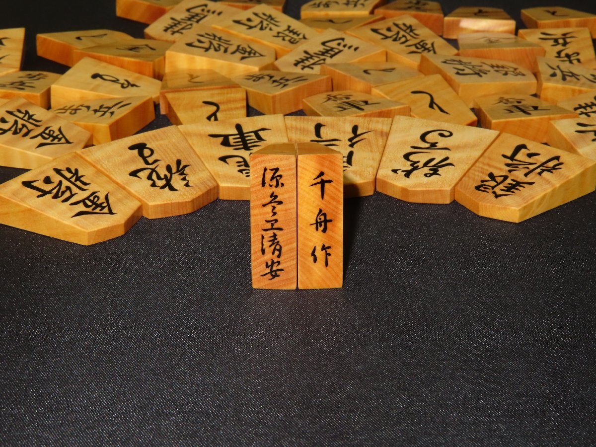 ▲千舟作源兵衛清安本黄楊虎杢盛上将棋駒▲新品/桐製平箱付