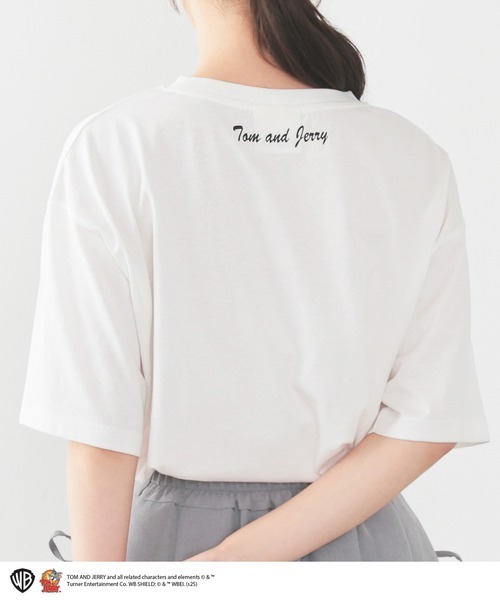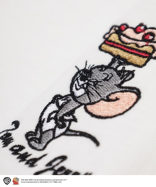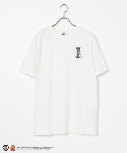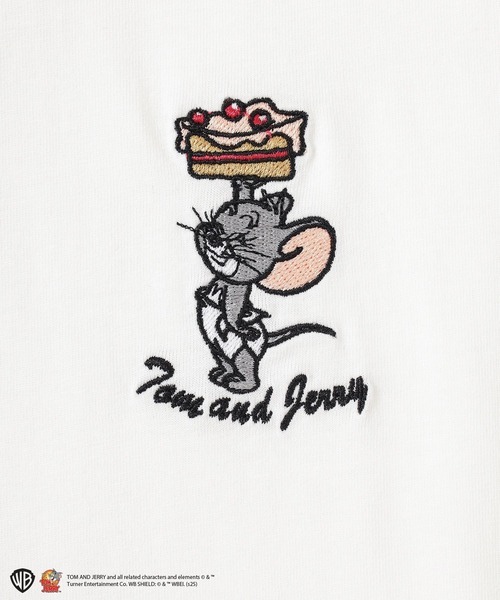 COLZA コルザ トムとジェリー 刺繍付き ゆる T (ホワイト タフィー) Tシャツ Sサイズ トム&ジェリー
