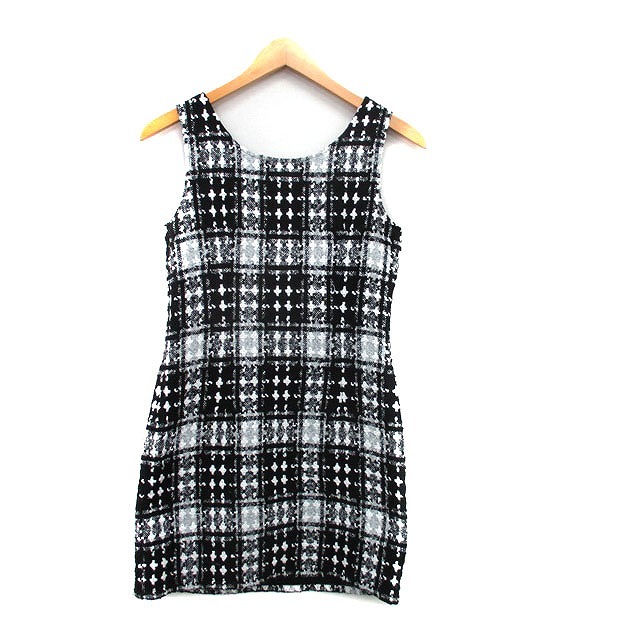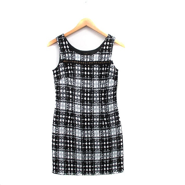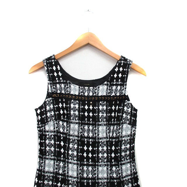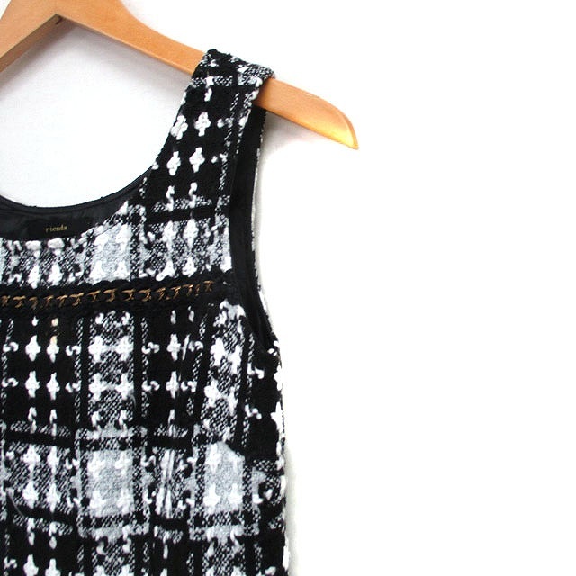リエンダ rienda ワンピース ミニ ノースリーブ ツイード S ブラック 黒 /KT25 レディース