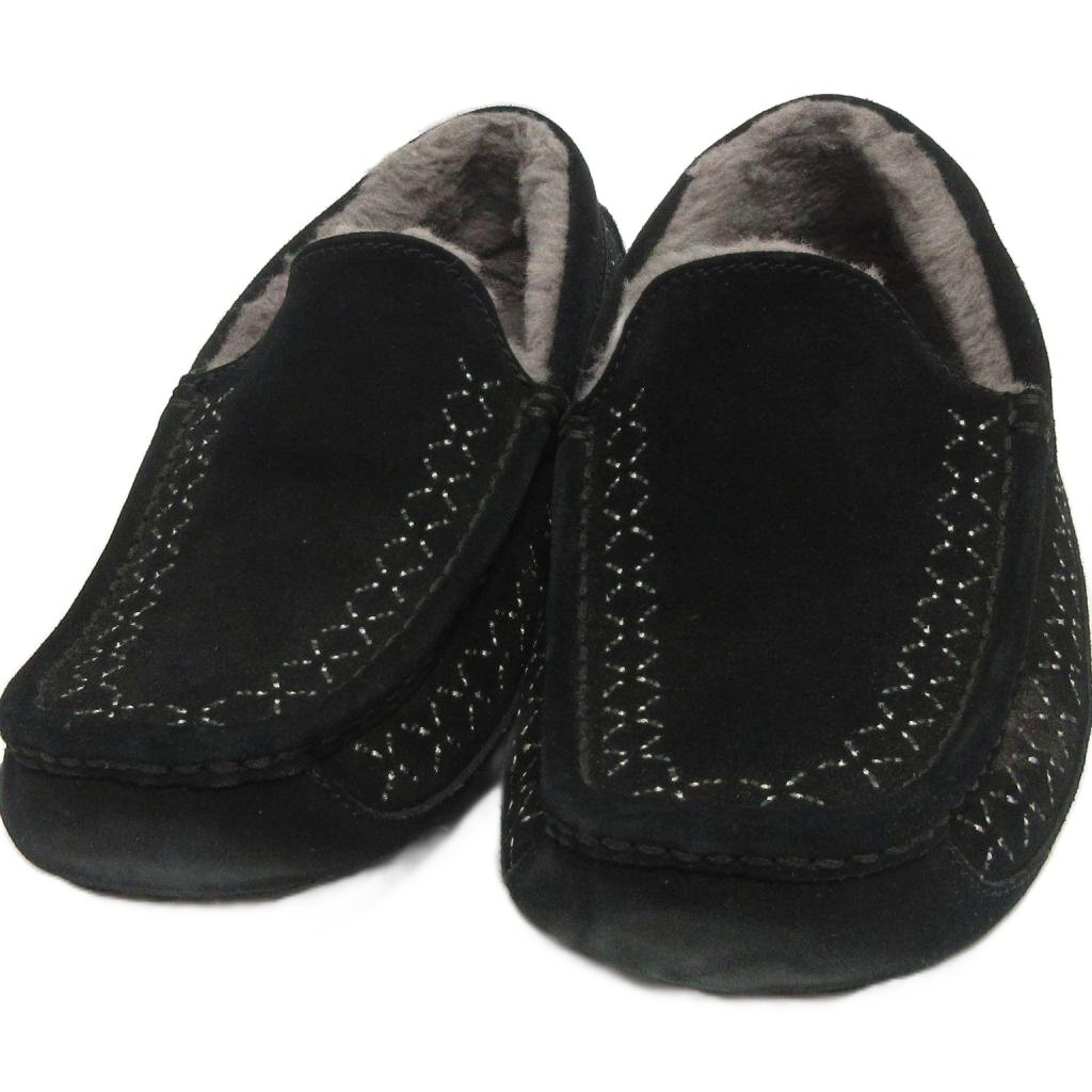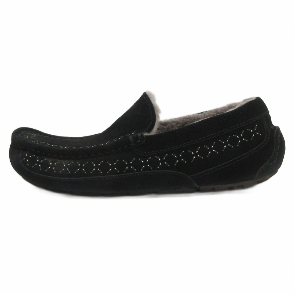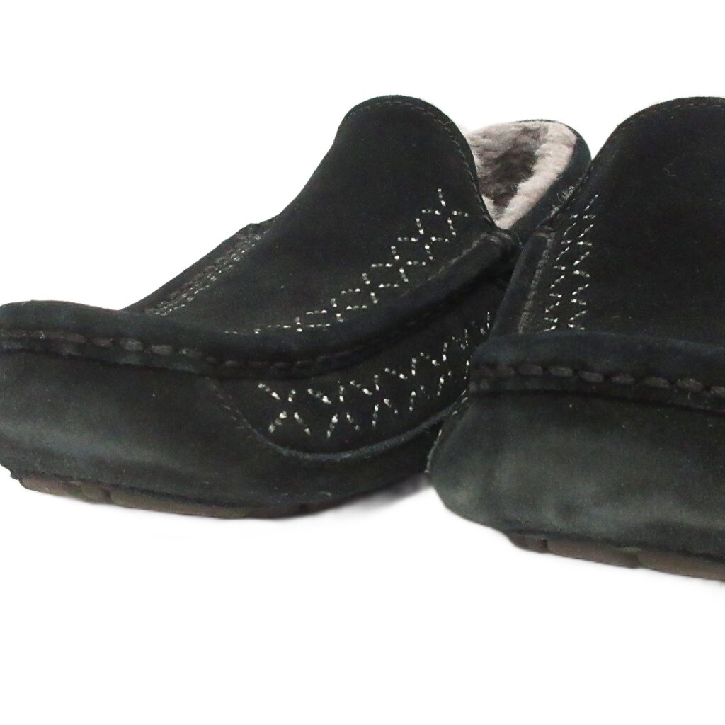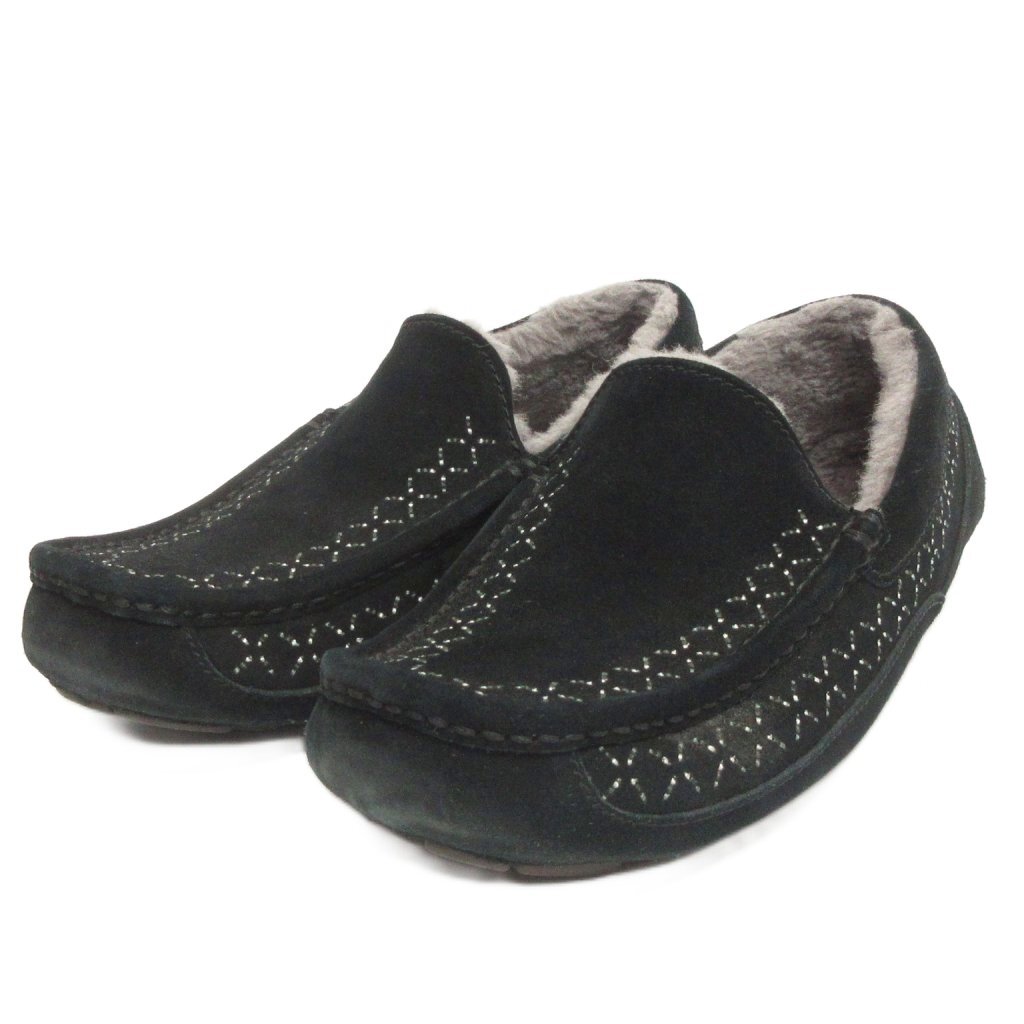 アグ UGG × ホワイトマウンテニアリング モカシン スリッポン スエード 刺繍 黒 ブラック 25.0cm ☆AA★ メンズ