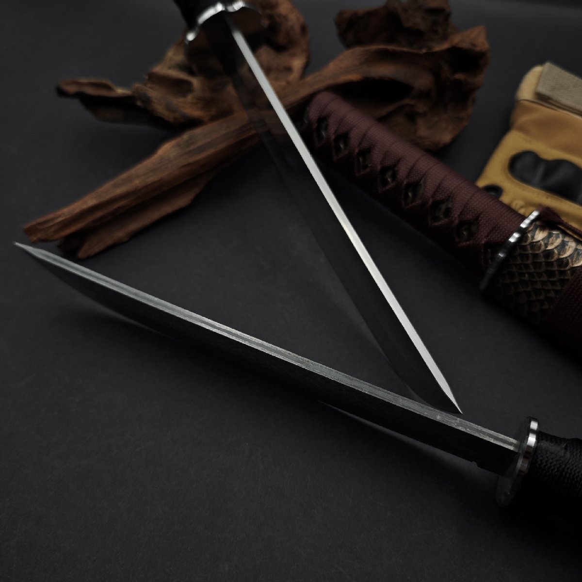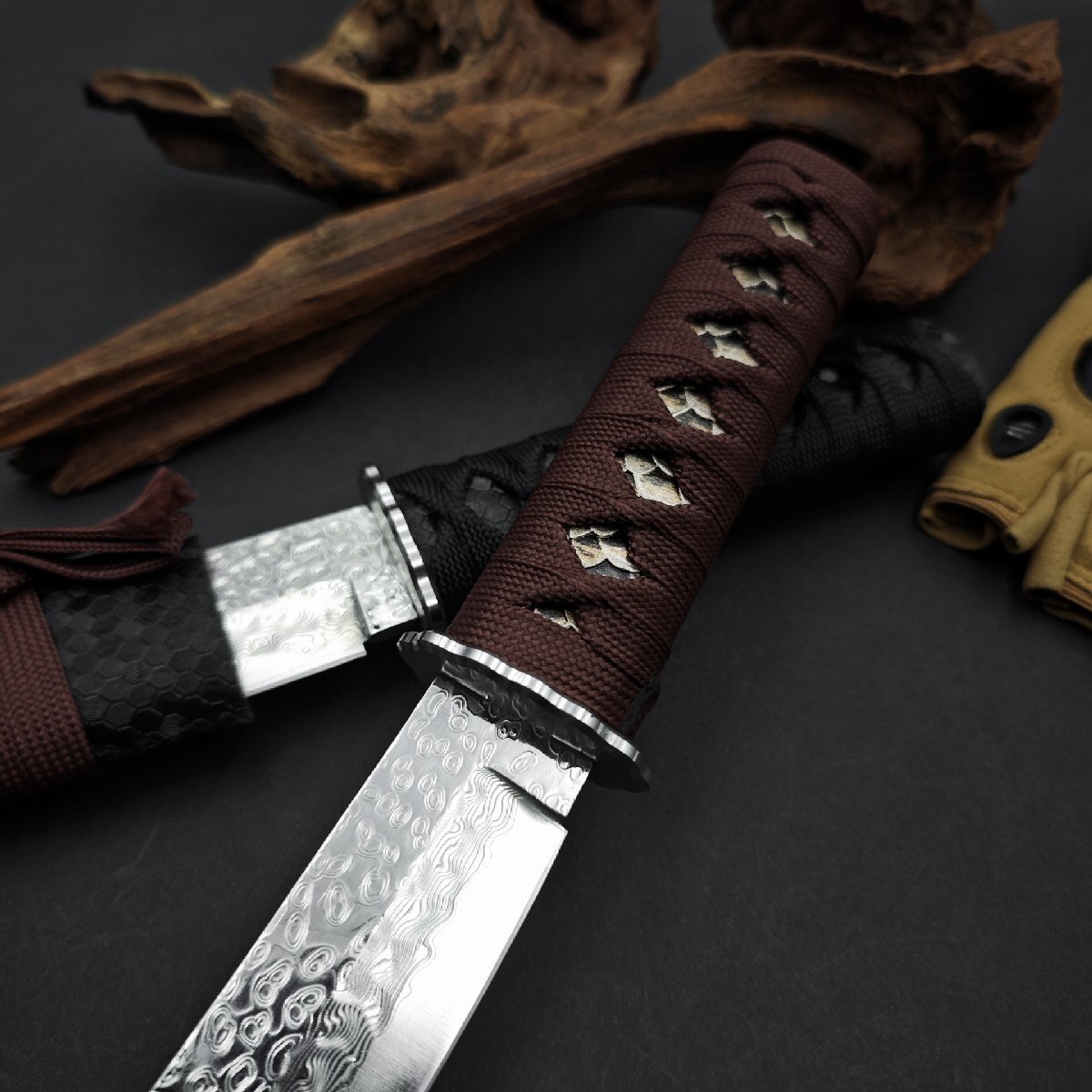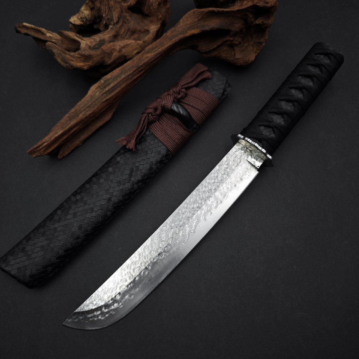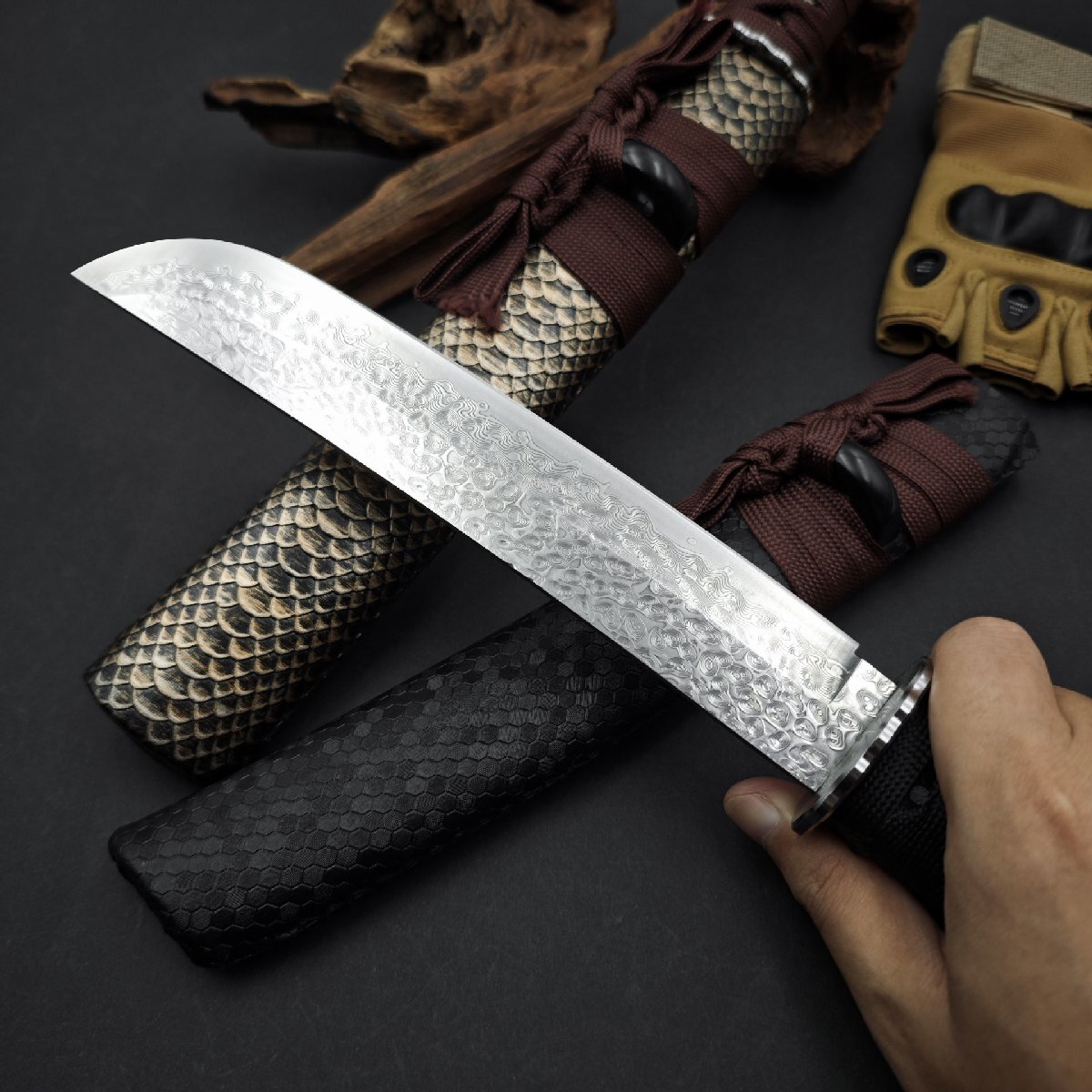 ハンティング  ダマスカスナイフ鋼製 全長 350mm 大型サバイバルナイフ アウトドアナイフ 薪割り 鋼製 刃長さ215mm シース付き hw1380