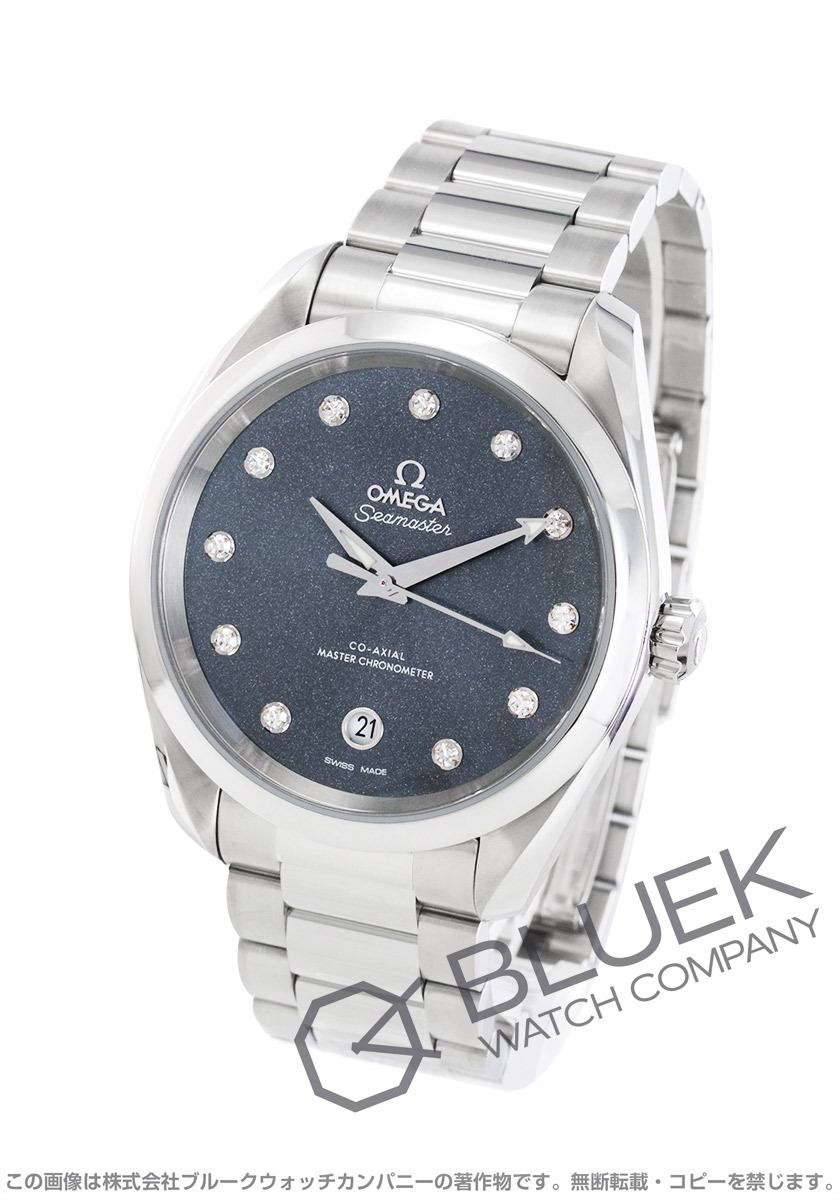 | アクアテラは、オメガのラグジュアリースポーツモデル。丁寧な仕上げが施された150m防水ケース&3連ブレスなめらかな着け心地にもオメガの高級感をまとわせてオンオフ活躍します。中でもシルバーパウダーを使ったシマー(かすかに光る、微光の意)ブルーグレーダイヤルに11粒のダイヤモンド(0.17ct)煌めくこの38ミリモデルは、女性用には珍しいMETAS認定のマスタークロノメーター自動巻きコーアクシャルキャリバーを搭載しているのも魅力。15000ガウスもの高耐磁性能で磁気を寄せつけないムーブメントが鑑賞できるケースバックは眺めるほどに愛着を深め、機械式時計初心者から上級者までおすすめです。 ※METASとはスイス連邦計量・認定局の略称。最高水準を誇る時計だけがマスタークロノメーターの称号を受けられます。 |