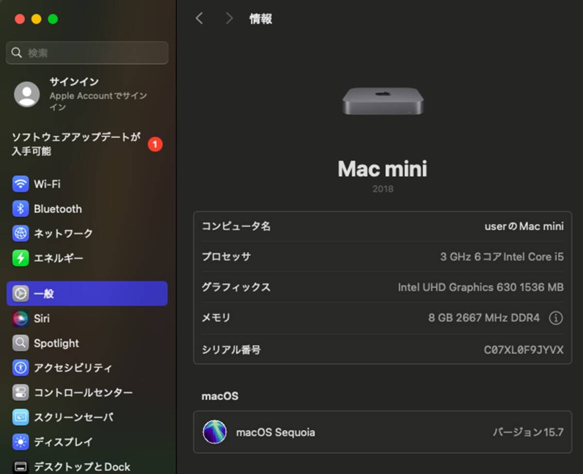 Mac mini(2018)256GB/8GB〈MRTT2J/A〉⑤