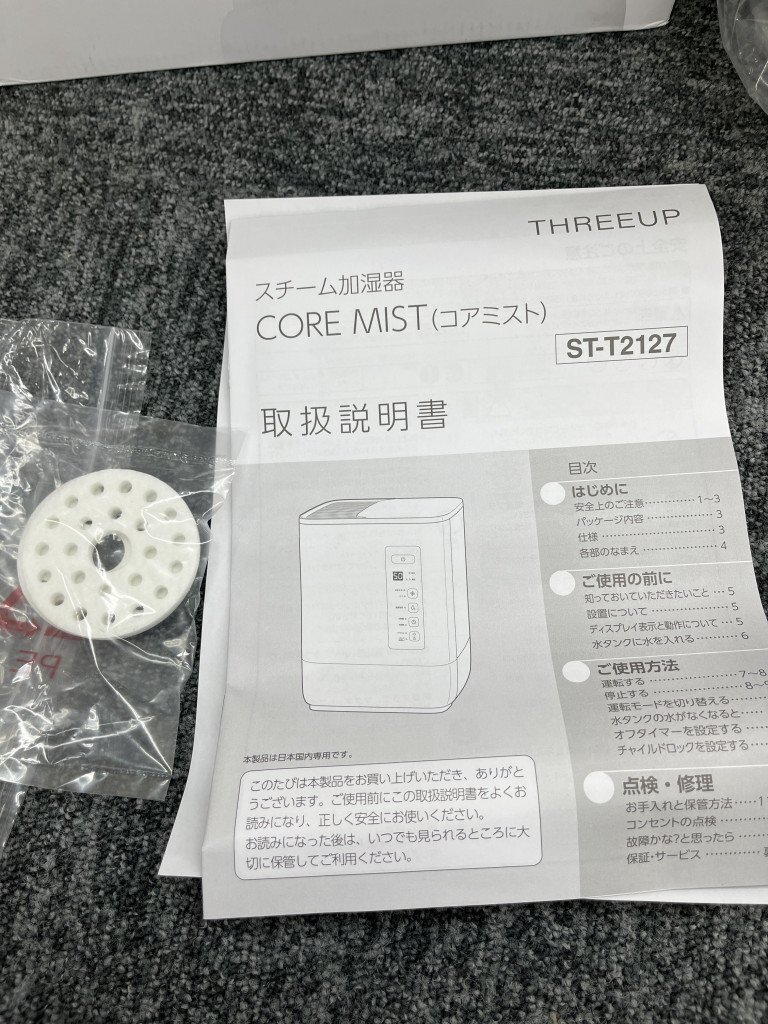 ◆【未使用品】THREEUP コアミスト 加湿器 スチーム式 ST-T2127 スリーアップ coremist