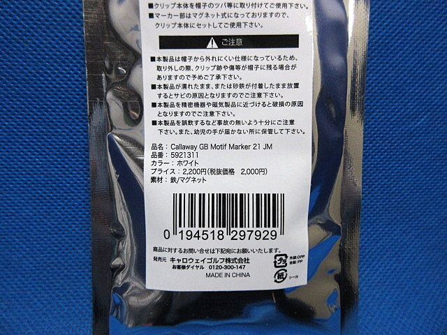 新品 キャロウェイ GB モチーフ マーカー 21 JM マグネット式 クリップマーカー 5921311 ホワイト ※ネコポス便対応