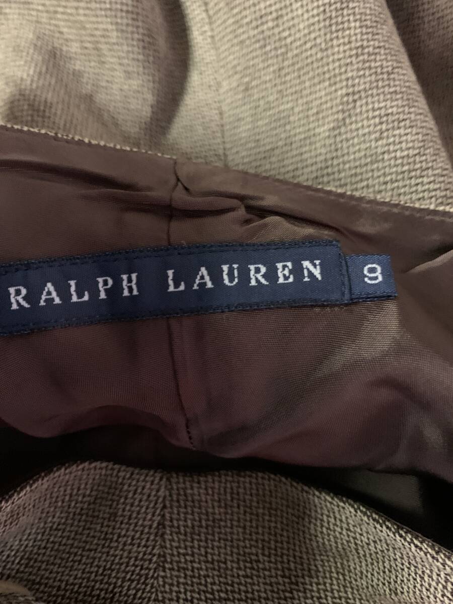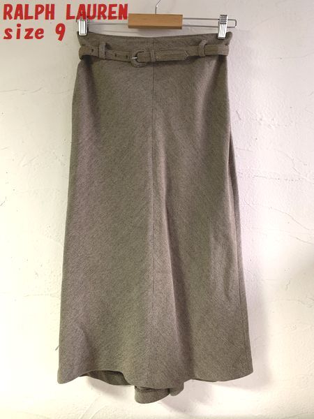 ◆O01◆RALPH LAUREN ラルフローレン 毛100% タイトフレアロングスカート ベルト付き ベージュブラウンミックス サイズ9