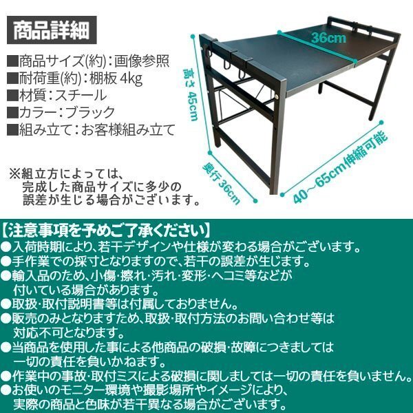 レンジ上ラック キッチンカウンター上収納 スパイスラック トースターラック 横幅 調整 伸縮式ラック 伸縮キッチンラック 冷蔵庫 黒