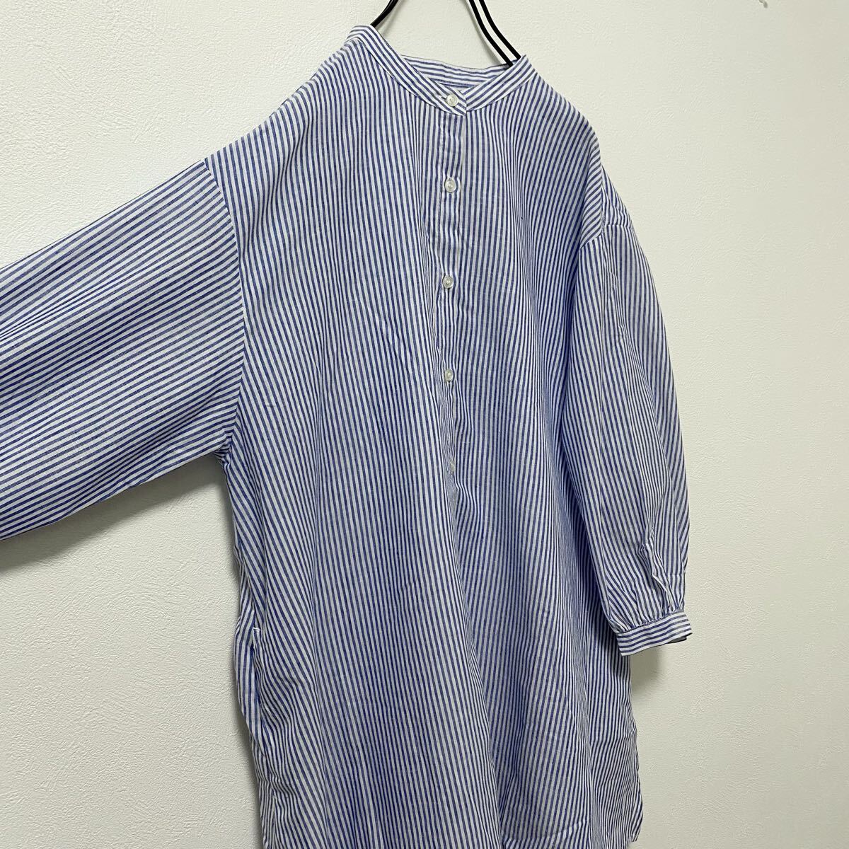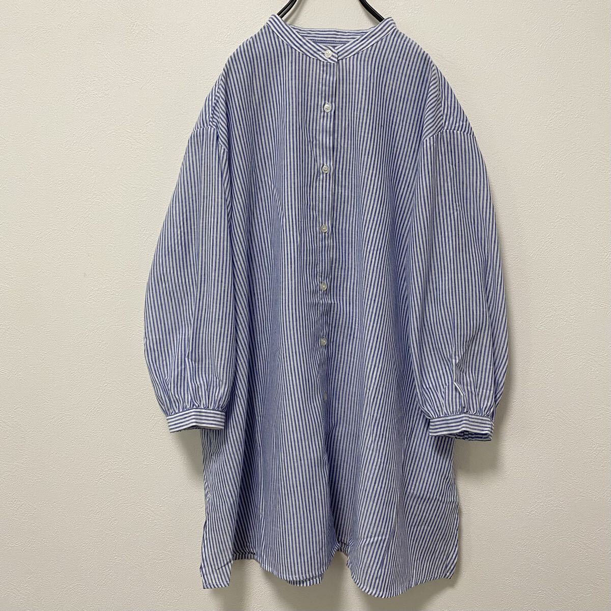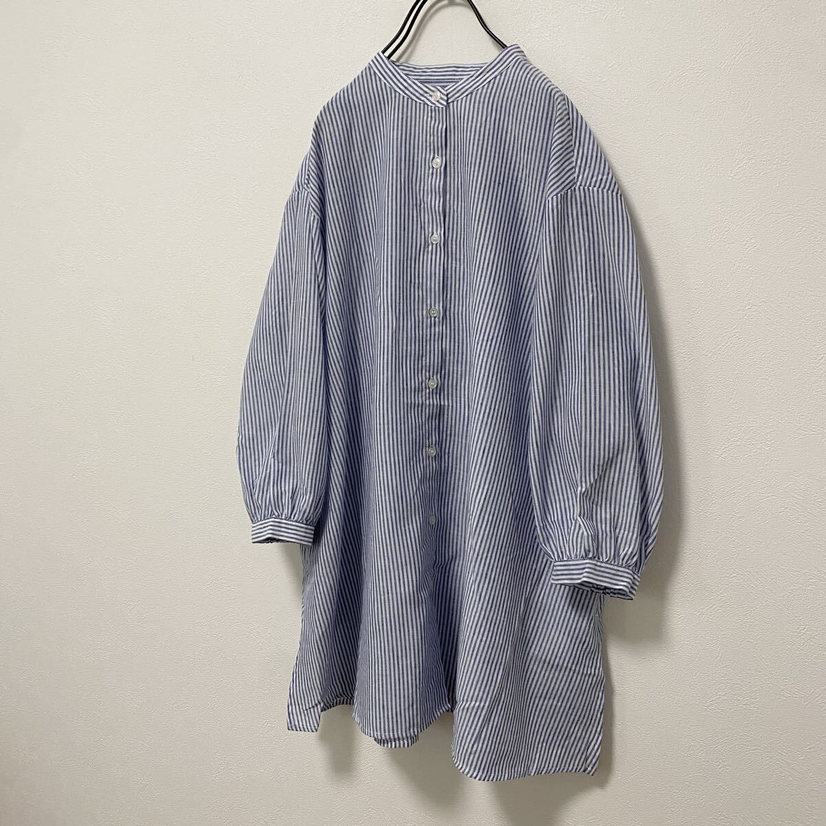 商品名 : リネンミックスバンドカラーストライプチュニック