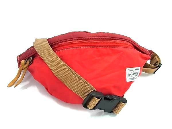 1円 ■美品■ PORTER ポーター 吉田カバン ナイロン ウエストポーチ ウエストバッグ ボディバッグ メンズ レッド系×ベージュ系 BQ1421