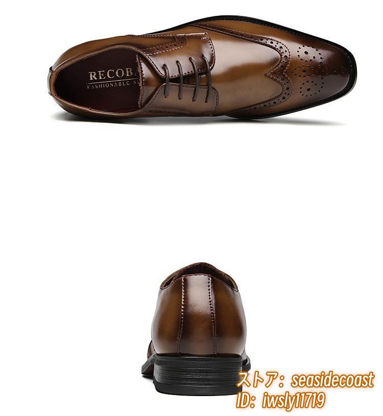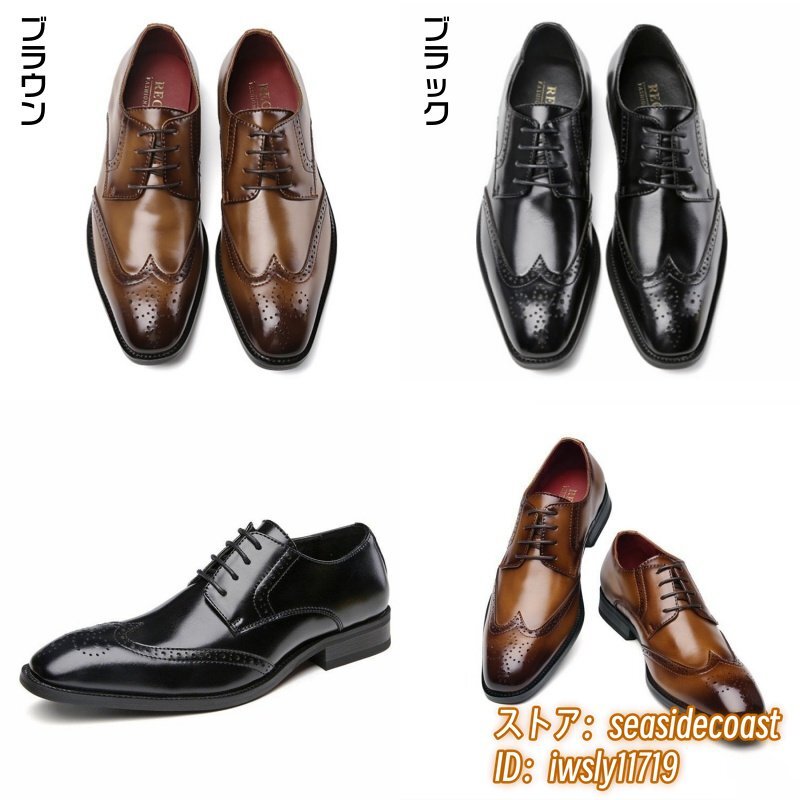 最高級 牛革 ビジネスシューズ 職人手作り メンズ 本革 レザーシューズ 新品 フォーマル 紳士靴 ウイングチップ 通勤靴 ブラウン 26.0cm
