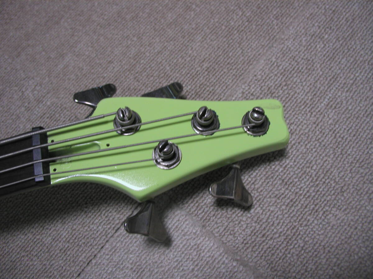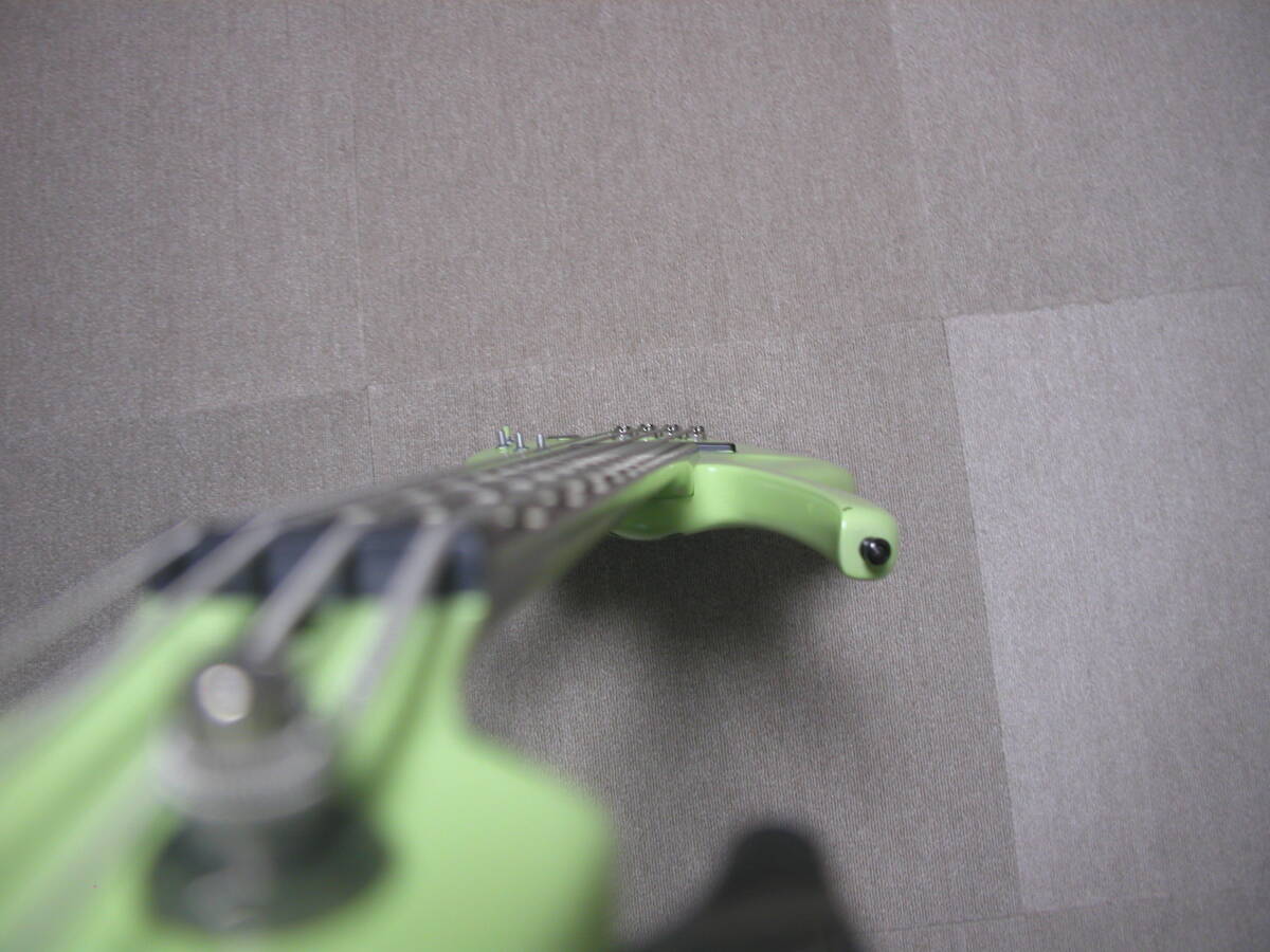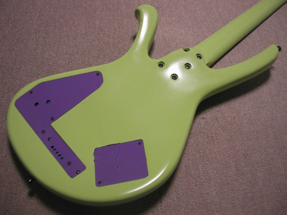 Ibanez EDA900で間違いないと思いますがヘッドが削られていて、元の塗装の上から色が塗られています。塗装のハガレや付着物や溶けた様な所もあります。