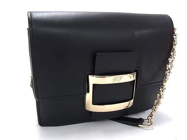 1円 ■美品■ Roger Vivier ロジェヴィヴィエ レザー チェーン クロスボディ ショルダーバッグ 斜め掛け レディース ブラック系 FR4880