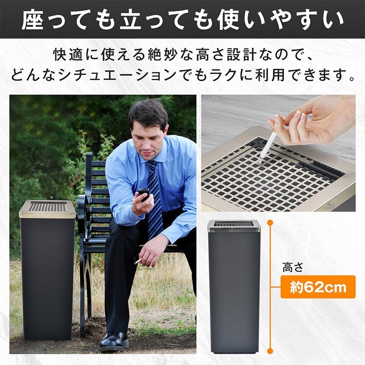 送料無料 灰皿 スタンド 蓋付き 屋外 喫煙台 吸い殻入れ ステンレス 大容量 深め受け皿 ゴミ捨て防止 業務用 倒れにくい角型 喫煙室 sg257