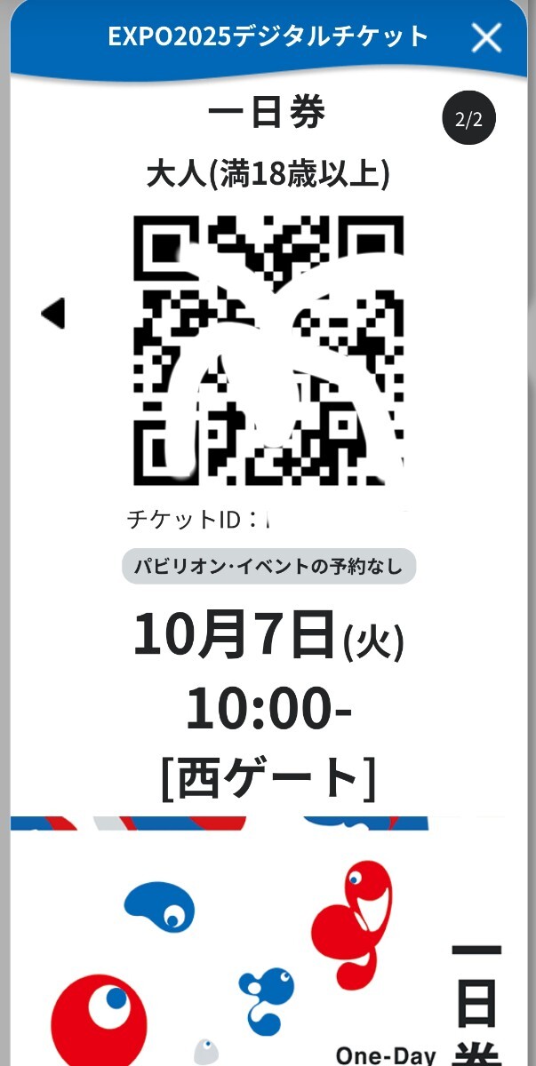 大阪・関西万博の10月7日(火) 西ゲート 10時入場予約済みのチケットです。