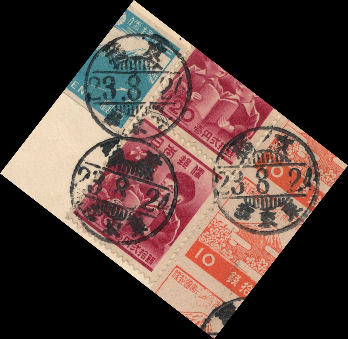 H23 船便/発行年使用|教育復興運動1円20銭2枚他合計4円/米宛書状 櫛型印:京橋/23.8.24/東京都 エンタイア