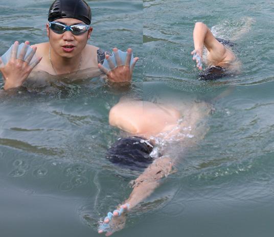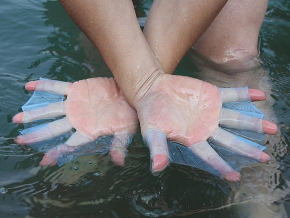 新品/パドルグローブ水泳トレーニング等/蛙水カキ/Lサイズ青