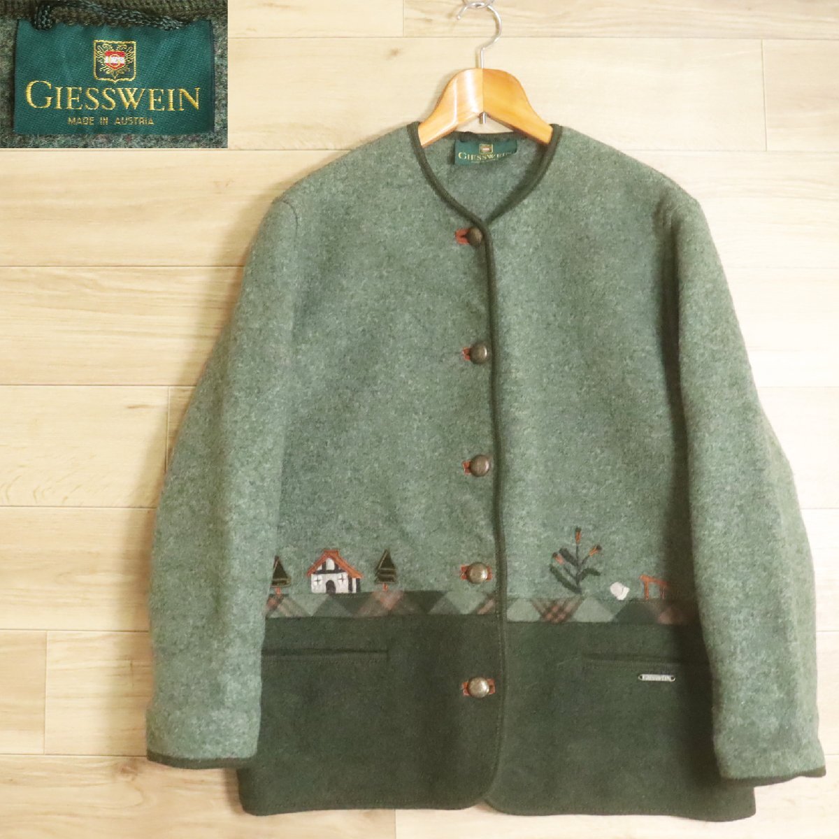 ?6K/R7.18-3 ユーロ古着 オーストリア製 GIESSWEIN ウールジャケット ノーカラー チロリアンジャケット チロル ブルゾン