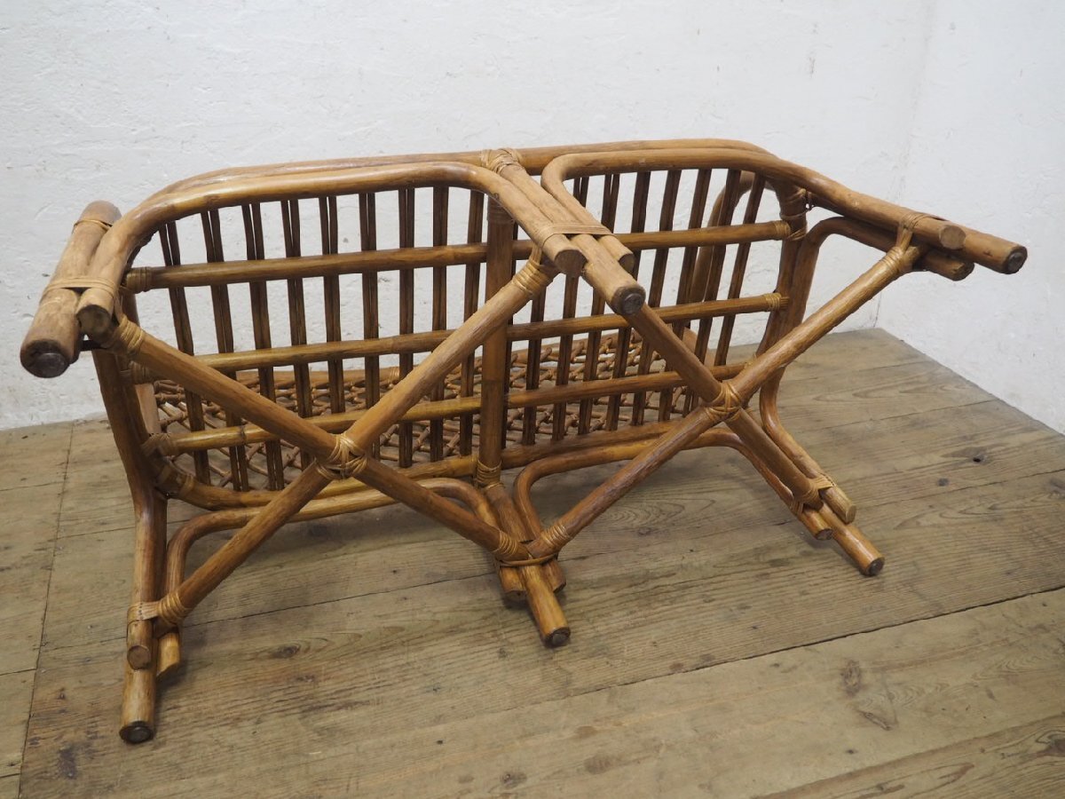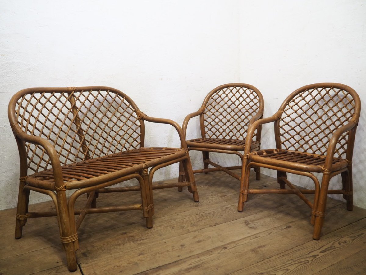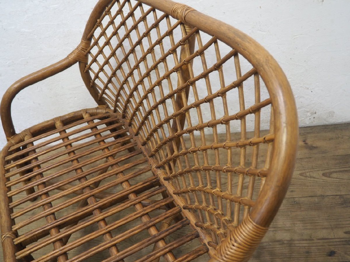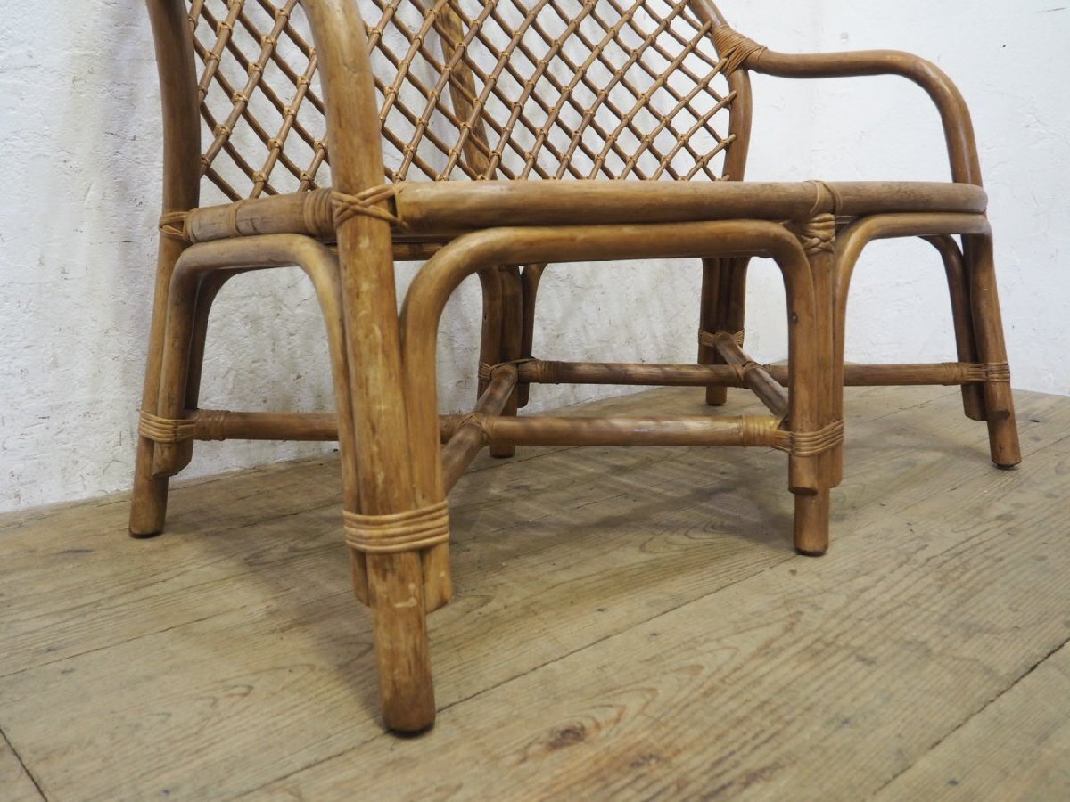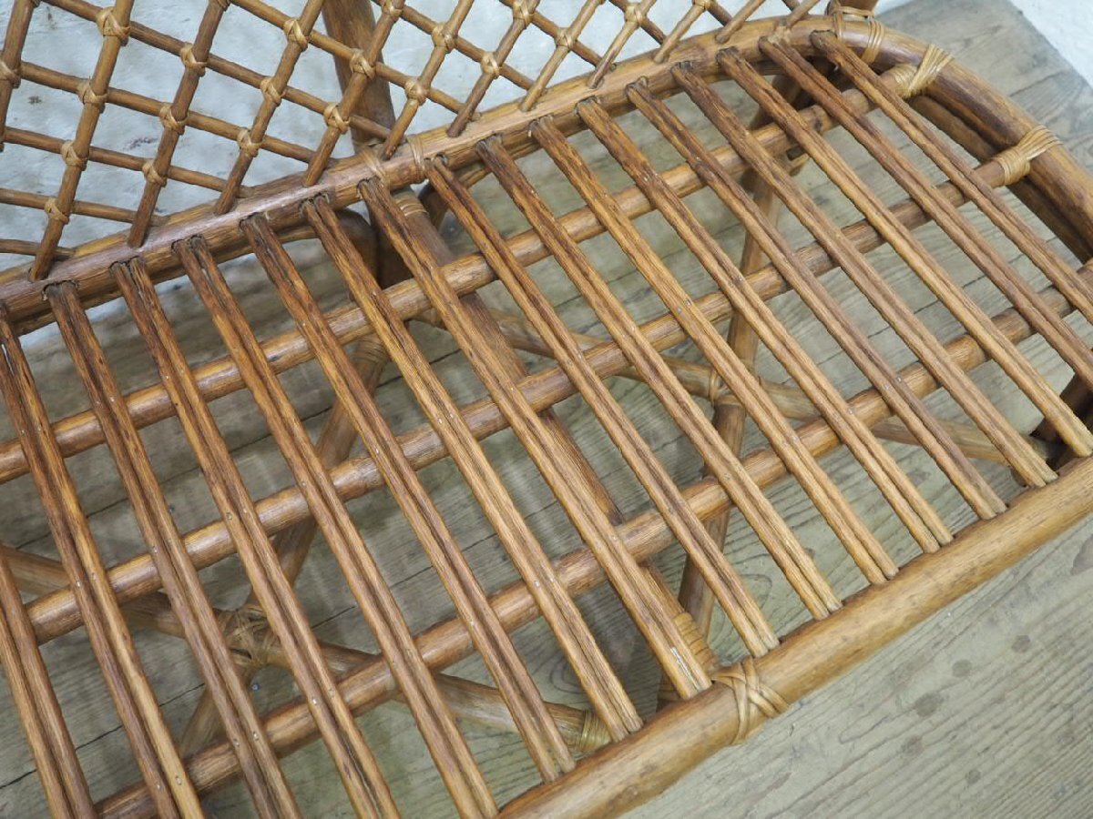 タE0843◆③可愛い籐のラブソファー◆藤 椅子 イス チェア 2人掛け 2P アームチェア レトロ リゾート カフェ 店舗什器 ビンテージR松