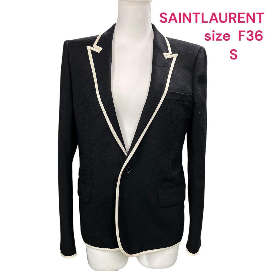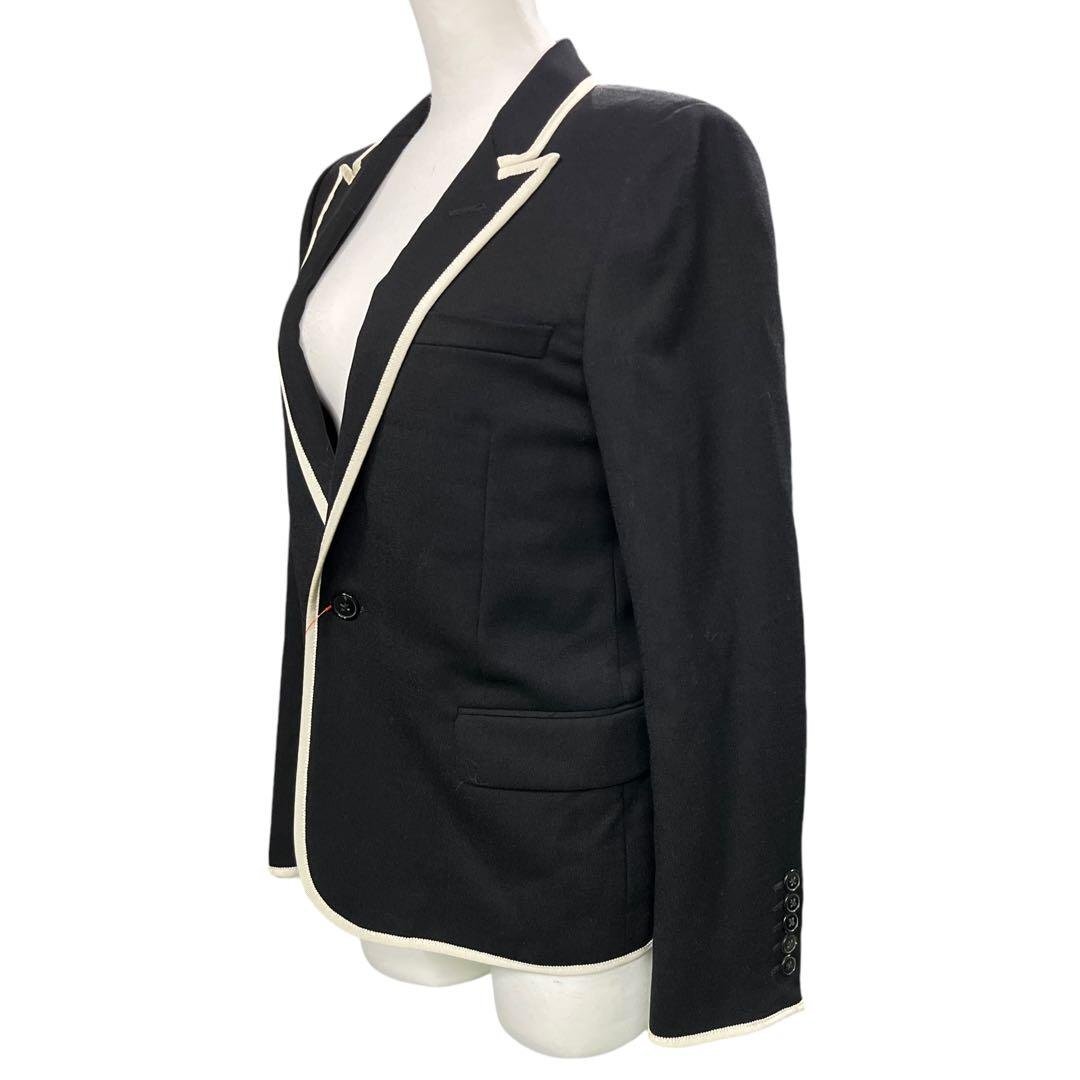 美品 サンローラン ホワイトテープラインが素敵なモノトーンジャケット M4I011