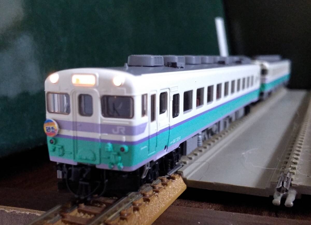 キハ58のヘッドライト・テールライトは点灯、モ-タ-は通常に走行しました。