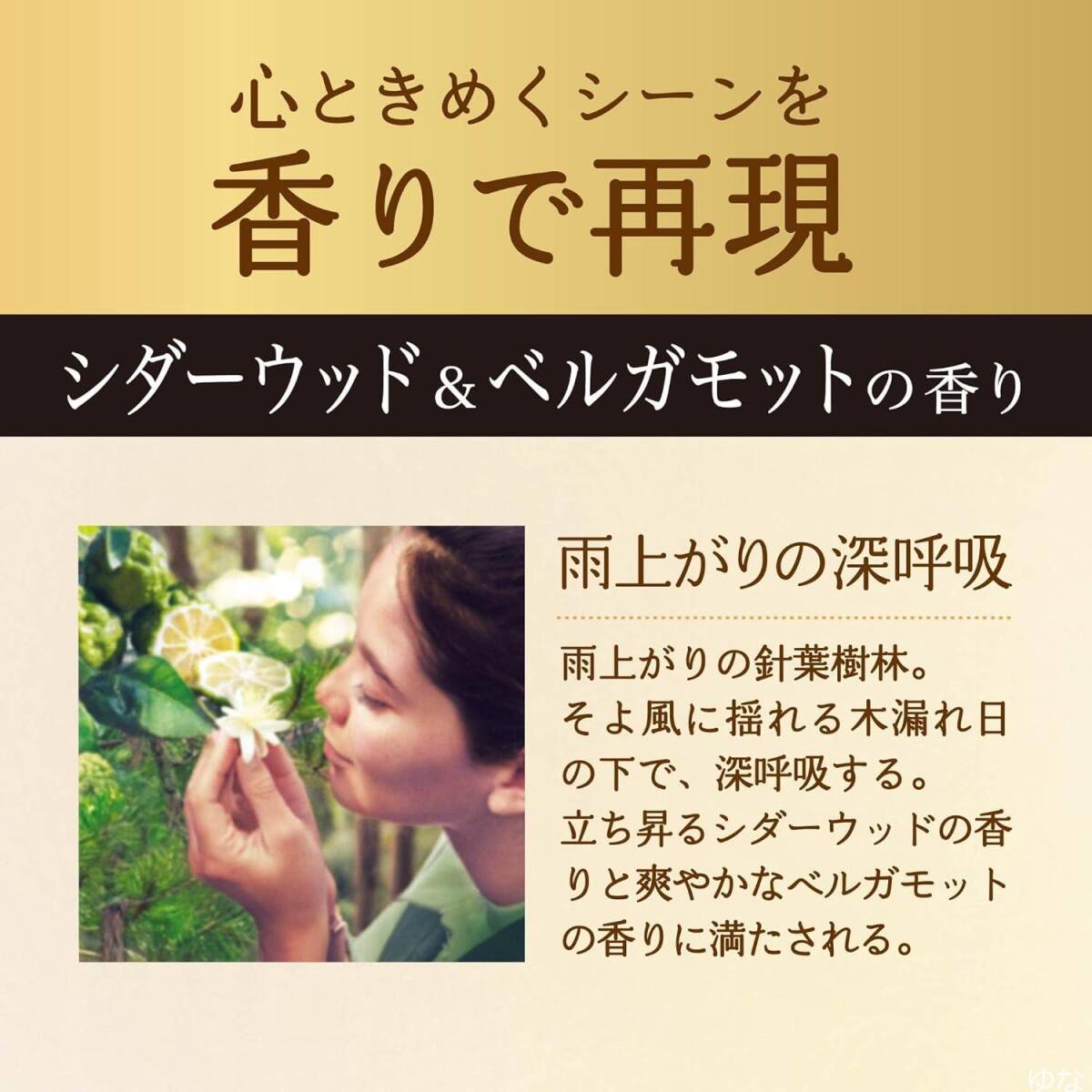 「シダーウッド&ベルガモットの香り」シダーウッドとベルガモットの気分がリフレッシュするさわやかな香り:トップ:ベルガモット・アールグレイ/ミドル:マグノリア・ふぃぐリーフ/ラスト:シダー・オーク。