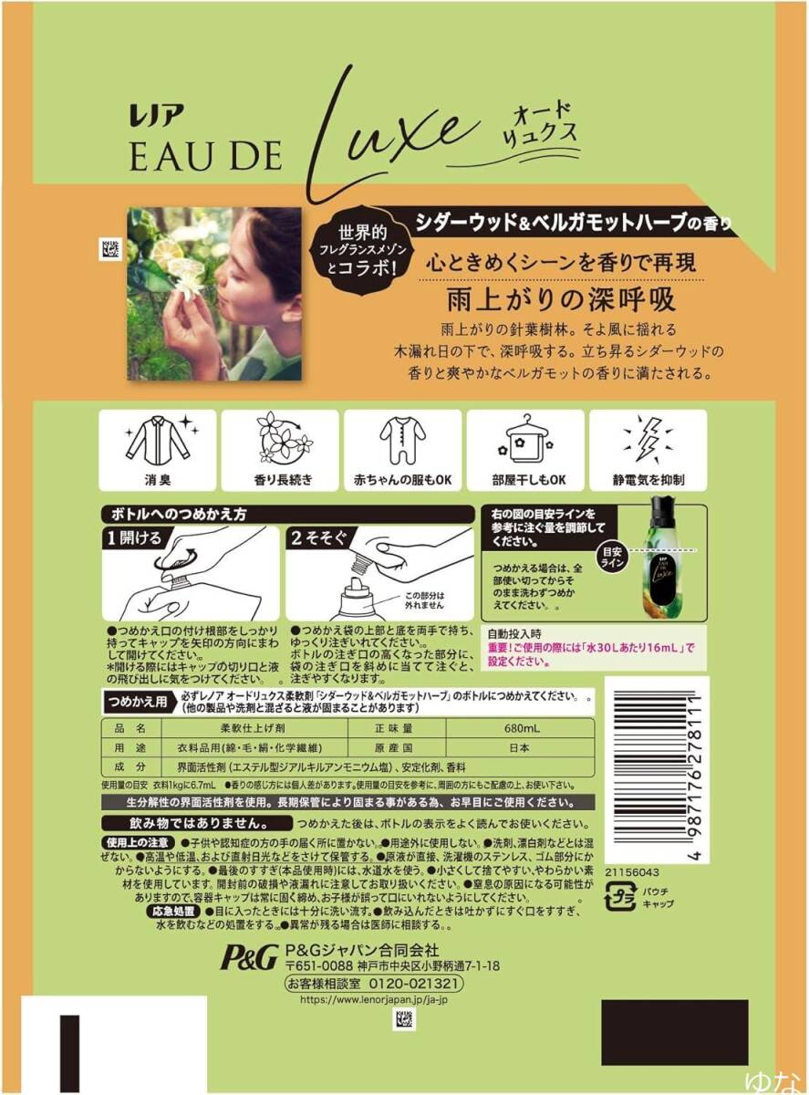 Lenor レノア オードリュクス 柔軟剤 シダーウッド&ベルガモットハーブの香り 詰め替え 680mL