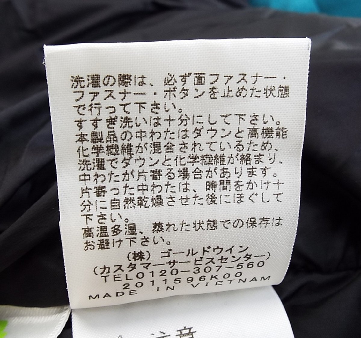 表地:ナイロン 100%(コーティング等樹脂加工) 中わた:ダウン 72%、レーヨン 20%、フェザー 8% 裏地:ナイロン 100% |