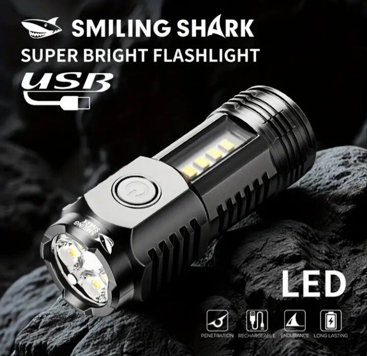 スマイルシャークLED.フラッシュライトUSB充電 COB. Type-C