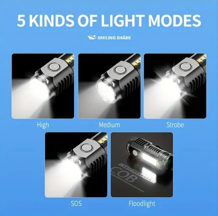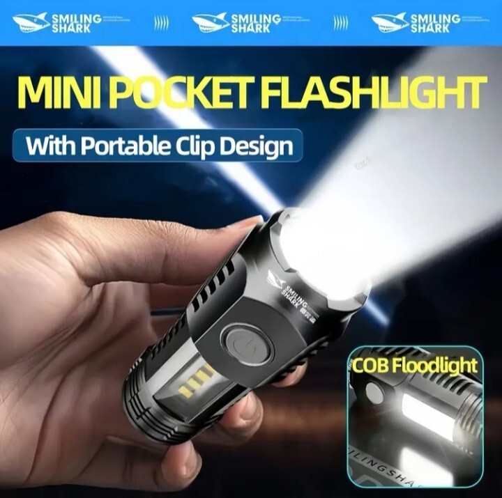 スマイルシャークLED.COB.USB   フラッシュライト.ポケットクリップ