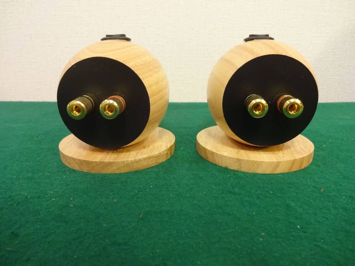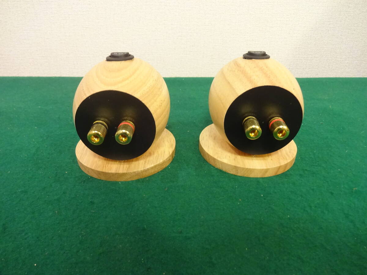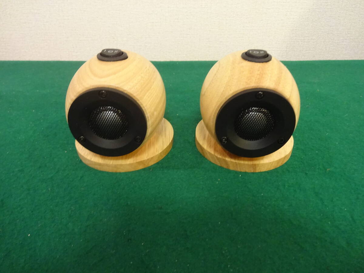 このスピーカーは天然木を削り出したものでタマゴ型の外形となっています。