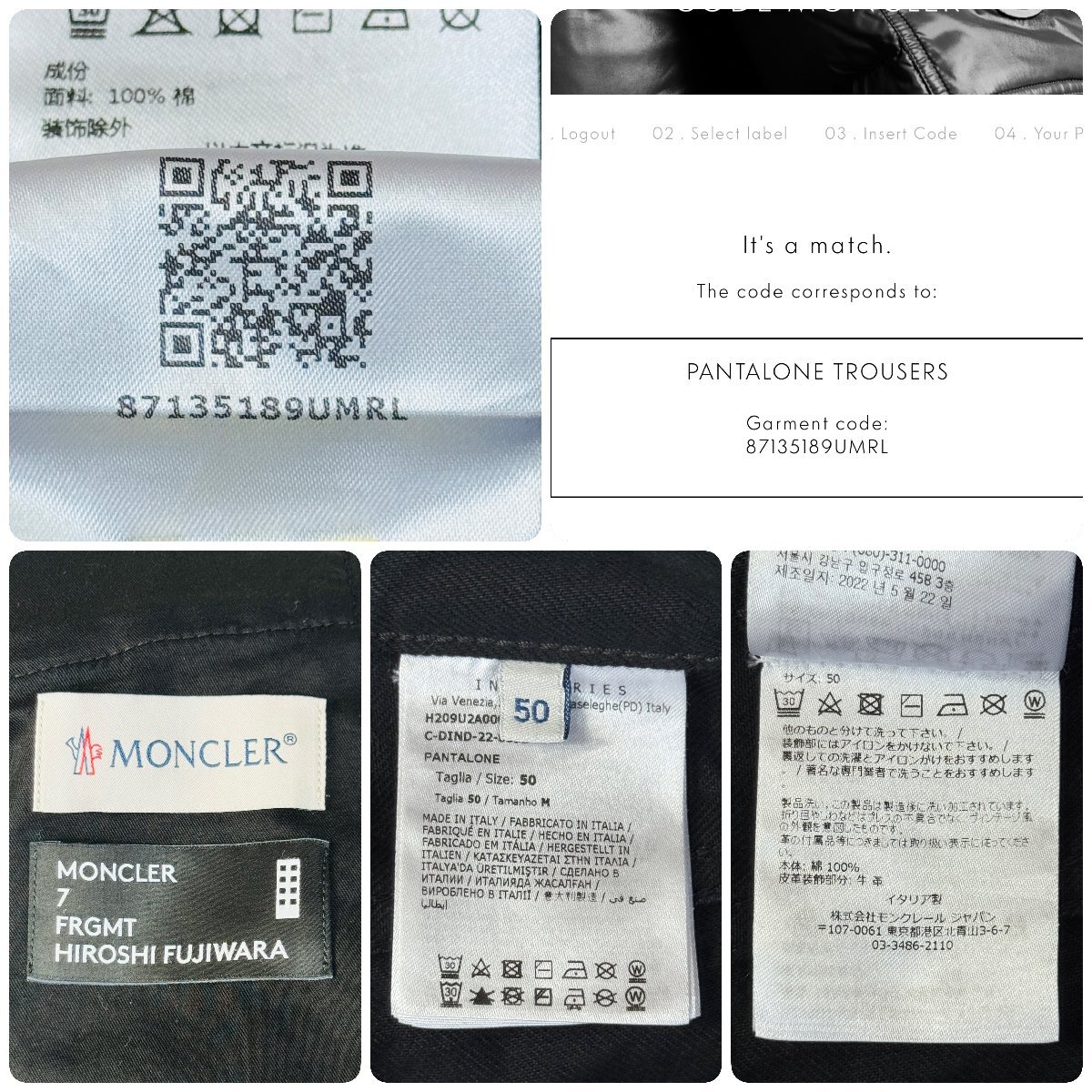 未使用並/50 XL~相当★モンクレール/MONCLER FRGMT PANTALONE 5ポケット パンツ ボトムス カジュアル ロゴ刺繍 レザーラベル 牛革 メンズ