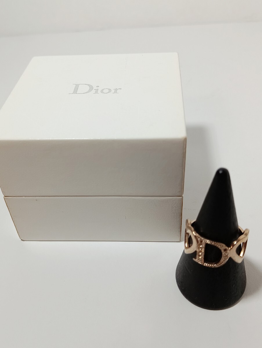 1円【現状品/箱付】Dior ディオール Christian Dior リング サイドハート 表記サイズ6 ラインストーン 指輪 ゴールドカラー