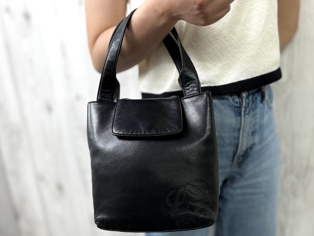 美品 LOEWE ロエベ ヴィンテージ アナグラム ハンドバッグ バッグ ナッパレザー 黒 90318 | ||