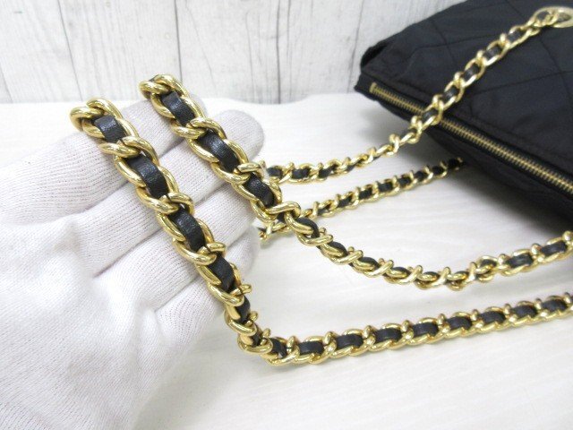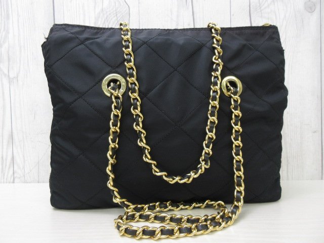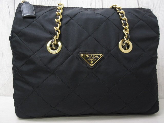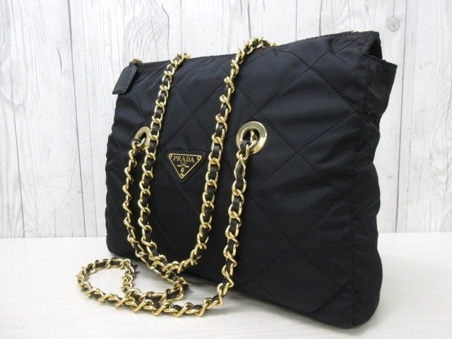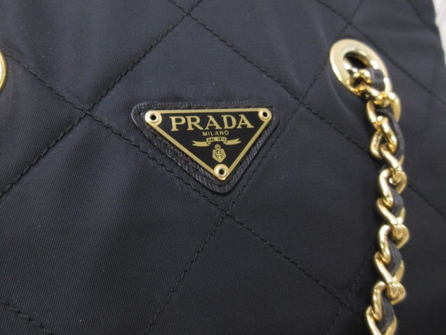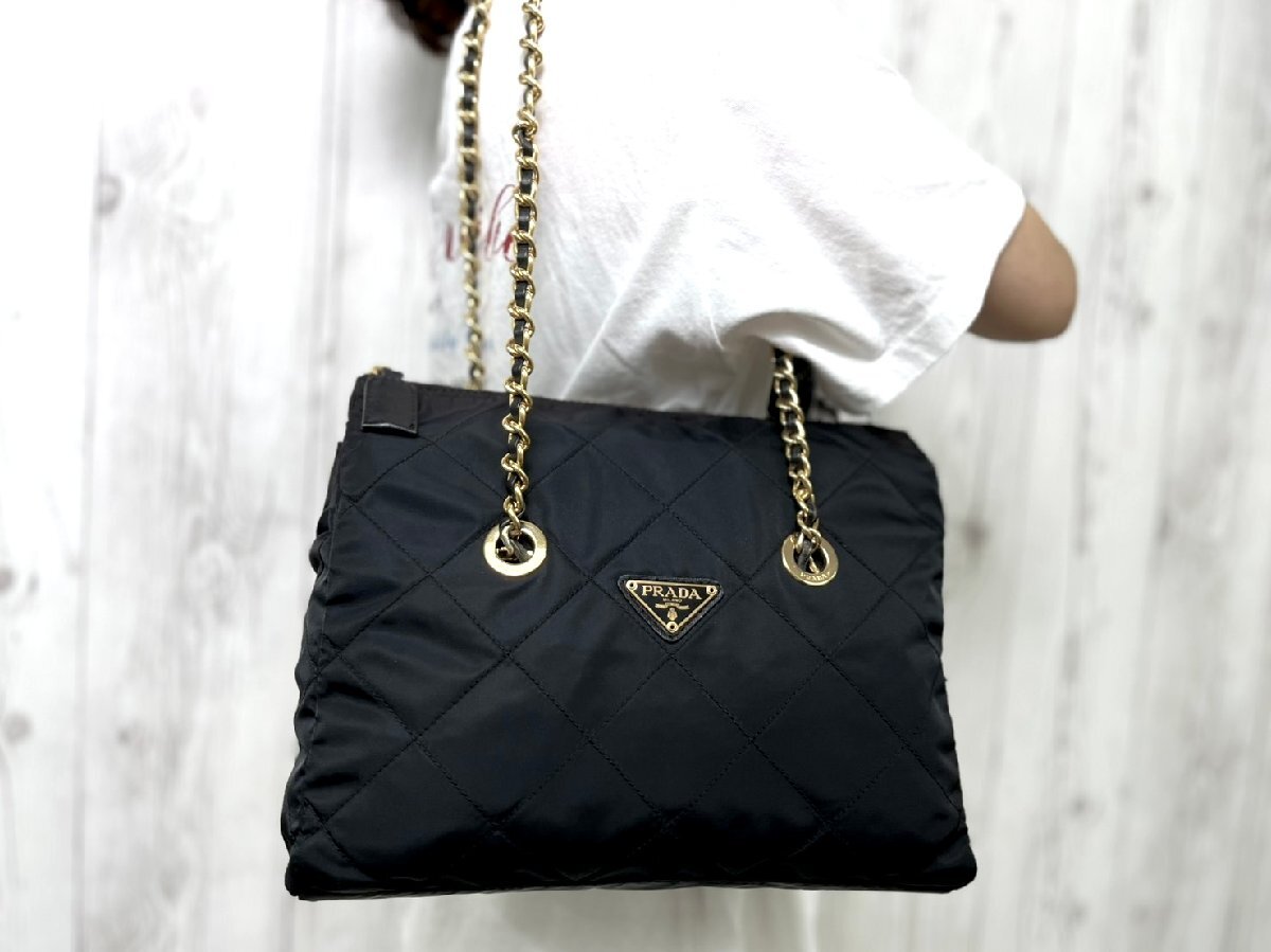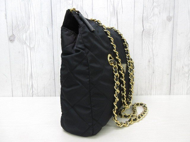 極美品 PRADA プラダ テスート キルティング ゴールドチェーン ショルダーバッグ バッグ ナイロン×レザー 黒 90316 | ||