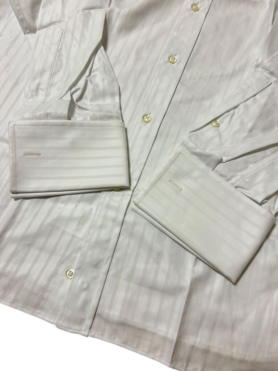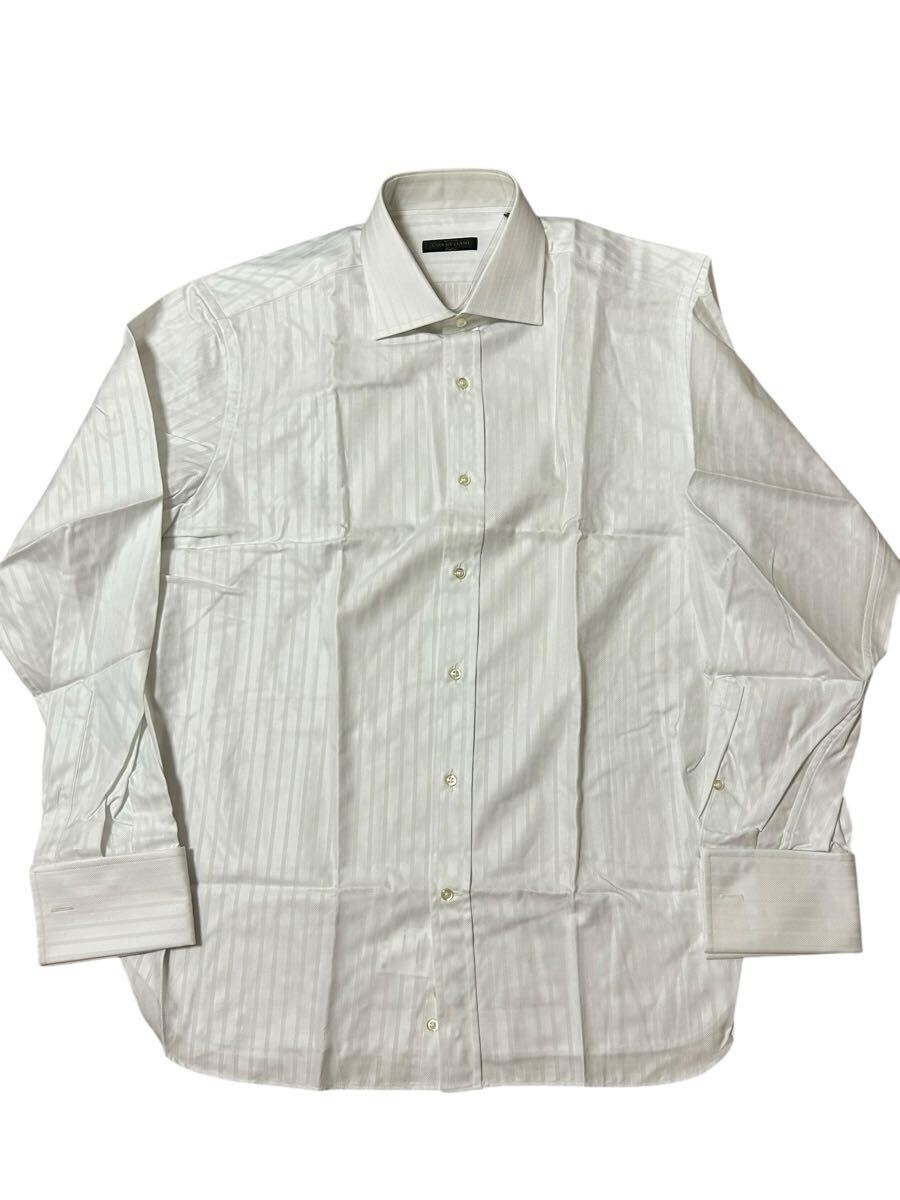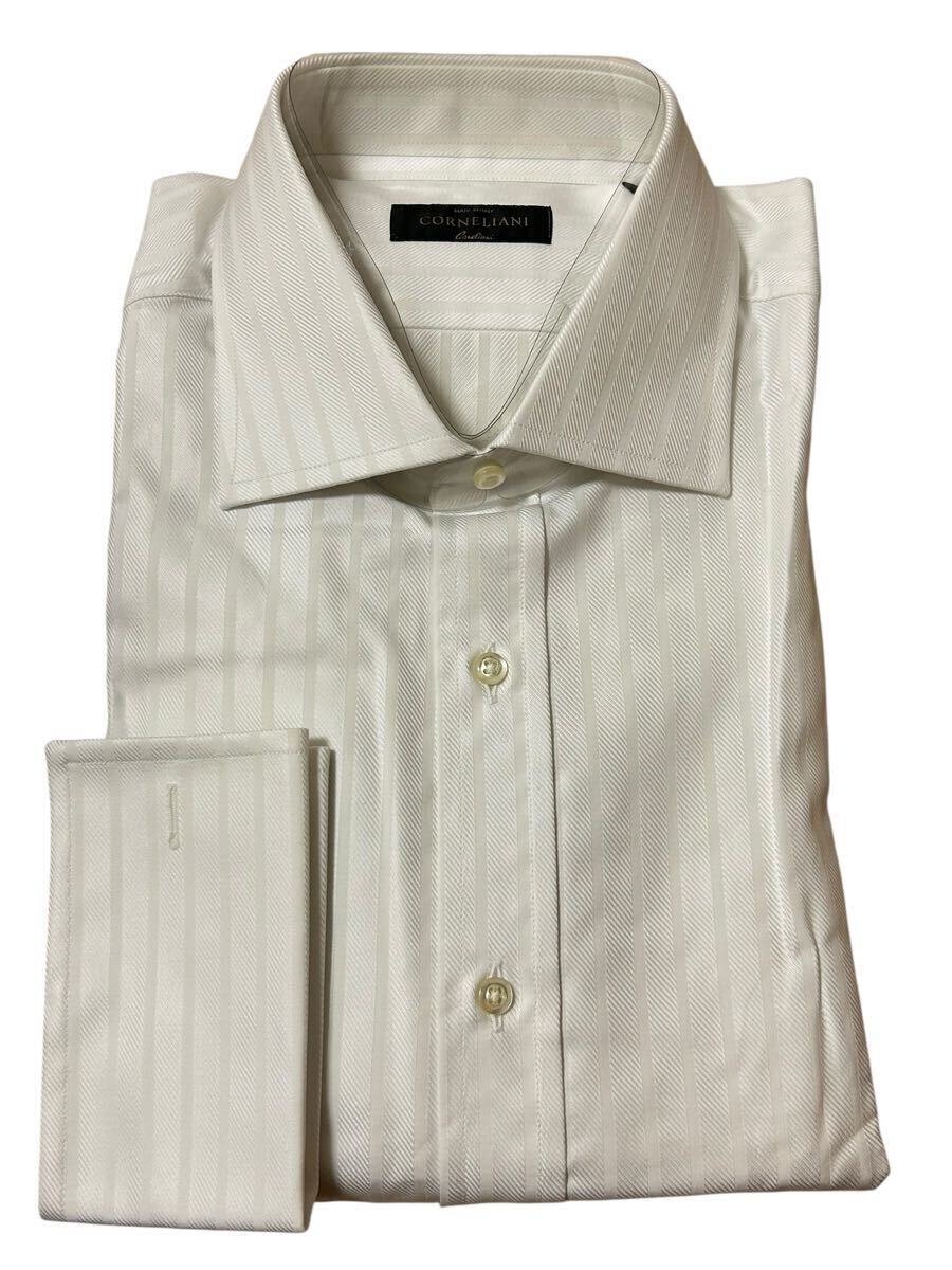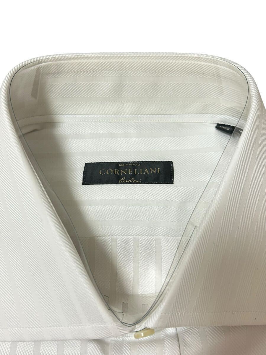 新品 CORNELIANI コルネリアーニ ワイシャツ ストライプ 白 ホワイト 大きいサイズ イタリア製 ダブルカフス 1円スタート 1スタ