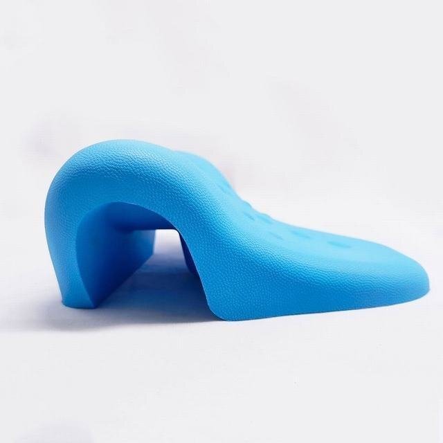 【人間工学に基づいたデザイン】 緩やかなカーブで首にしっかりとフィットし、突起部分がツボを刺激します。柔軟性のあるポリウレタン素材を採用することで、へたりにくいマッサージ枕に仕上げました