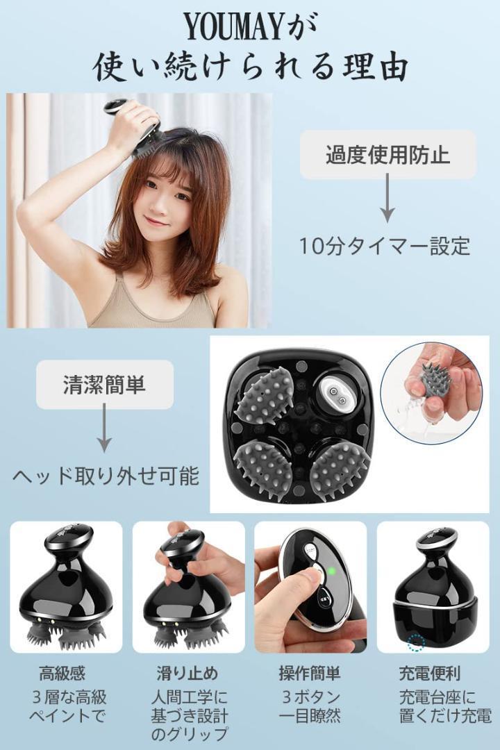 Youmay 電動頭皮ブラシ 赤光照射機能付き ヘッドブラシ 頭皮エステ IPX7防水 10分タイマー 乾湿両用 浴室 USB充電 コードレス特製ブラシ