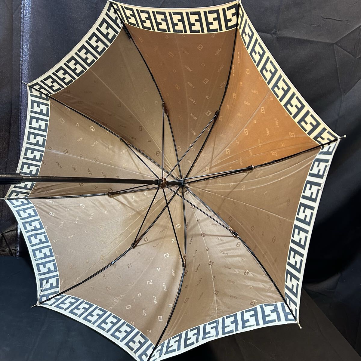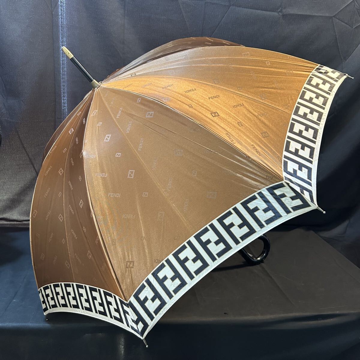 商品名 : 128 FENDI フェンディ 長傘 雨傘 傘 ズッカ柄 ロゴ 雨具 ブラウン 現状品