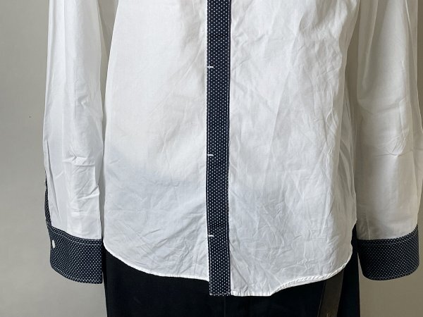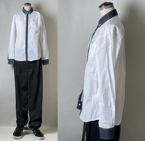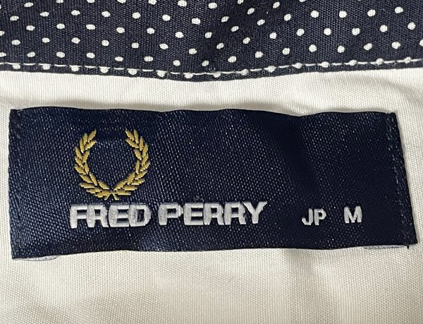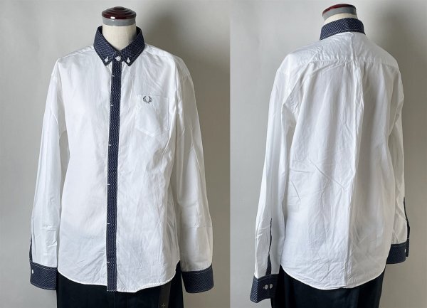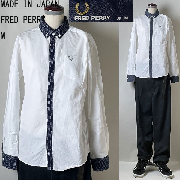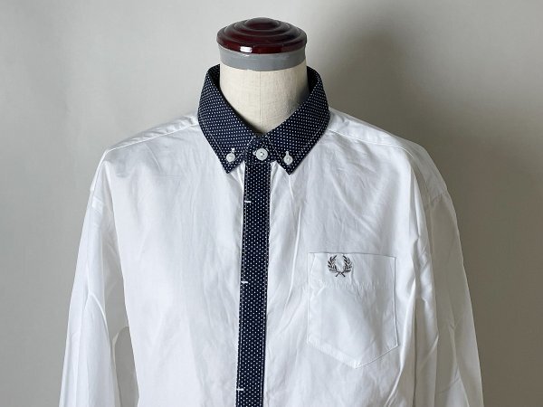 ★【国内正規 日本製】 FRED PERRY フレッドペリー F4199 コットン 100% ボタンダウン ドット 切替え 長袖 シャツ サイズ M ホワイト