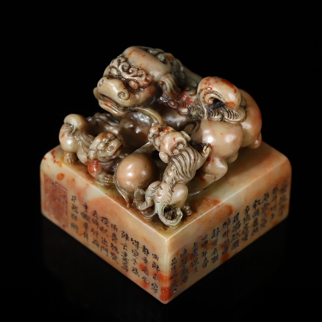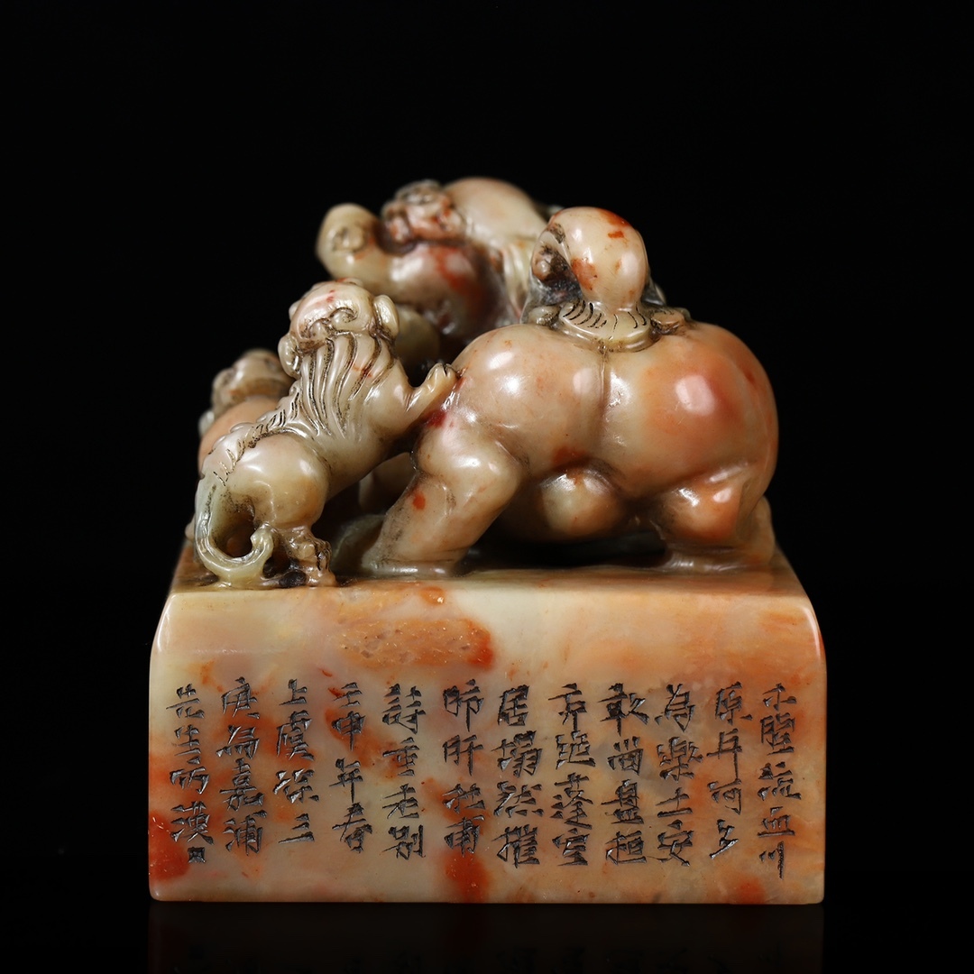 *珍品旧蔵* 【清代篆刻家 徐三庚】寿山芙蓉石 彫刻 子母獣鈕 印鑑 天然石 手彫 篆刻 古印材 極細工 中国古玩 骨董品 古美味 H410